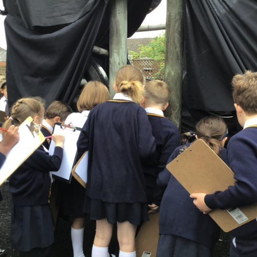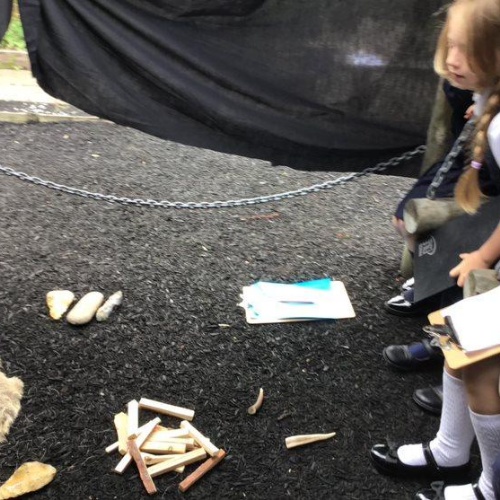 The children were amazed to find a strange den had appeared in the school playground. They were excited to explore and looked carefully at the artefacts to try and work out who had left it there.