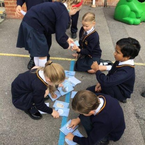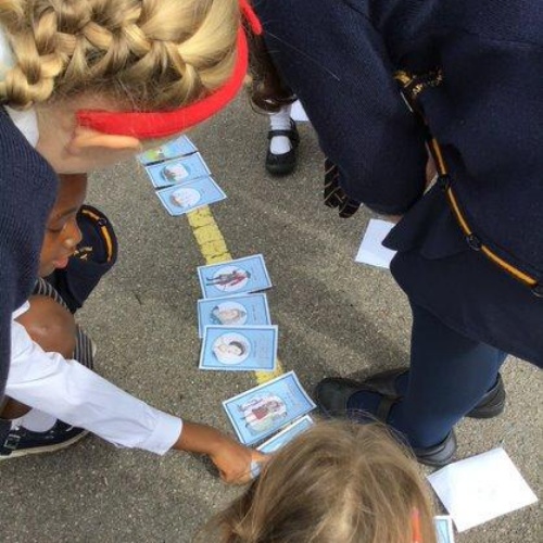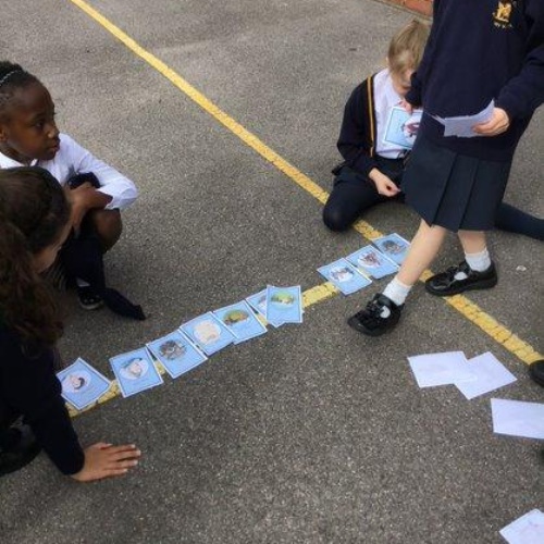 Whoops! Mrs Lynch had dropped all her timeline cards on the playground as she was rushing in from lunch! The children used the prior knowledge of historical events to order them. They then deduced from which period of history our mystery school visitor may have come from.