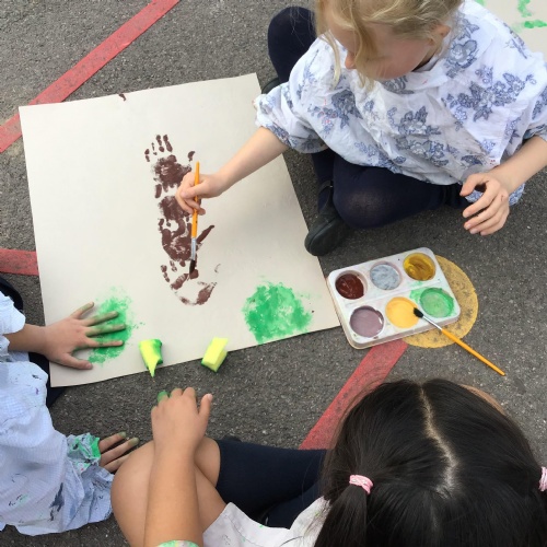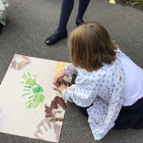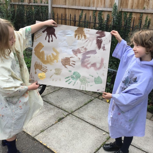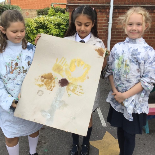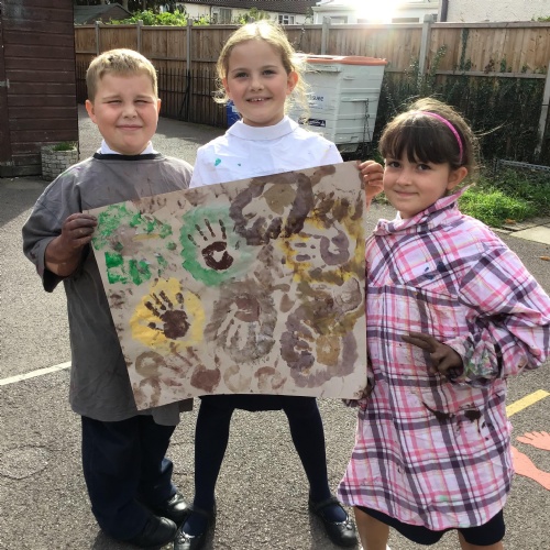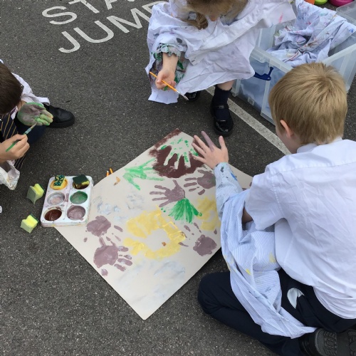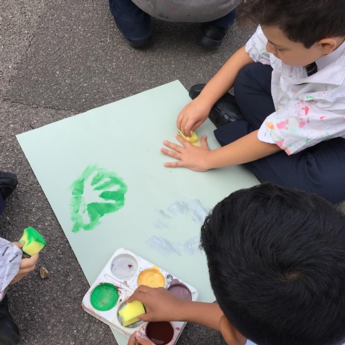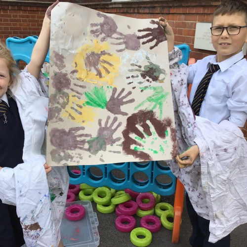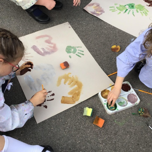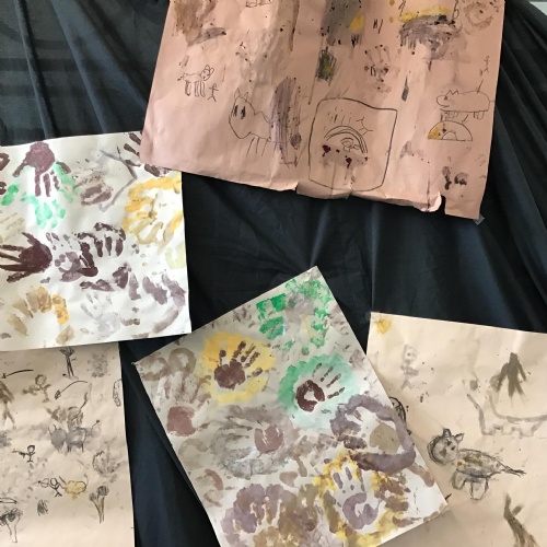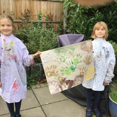 We had a go at creating our own external and internal handprints - using sponges (they would have not had these in this time - we wondered what they might have used - animal fur? leaves?