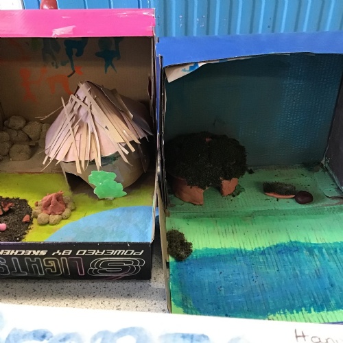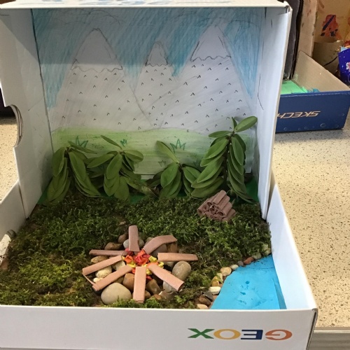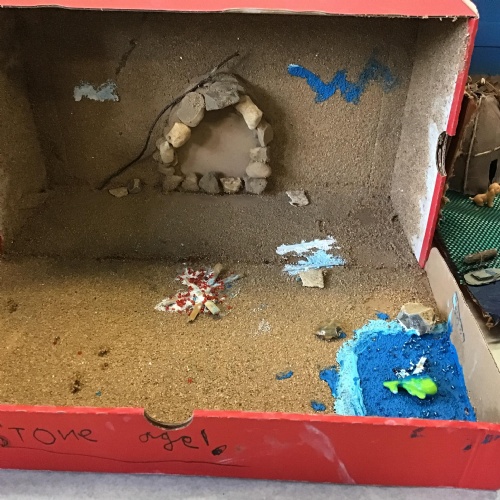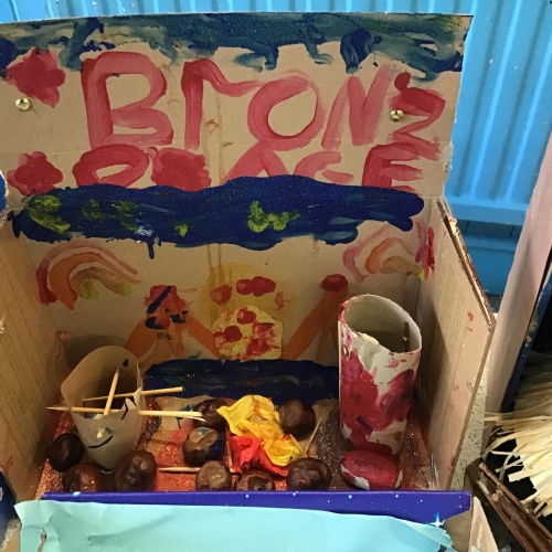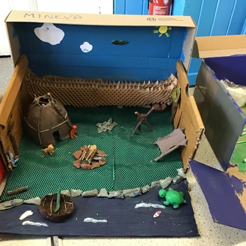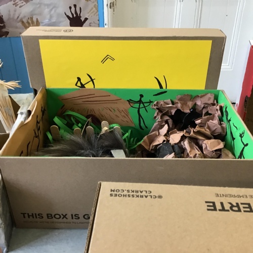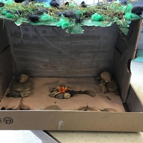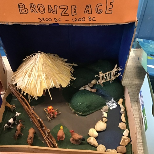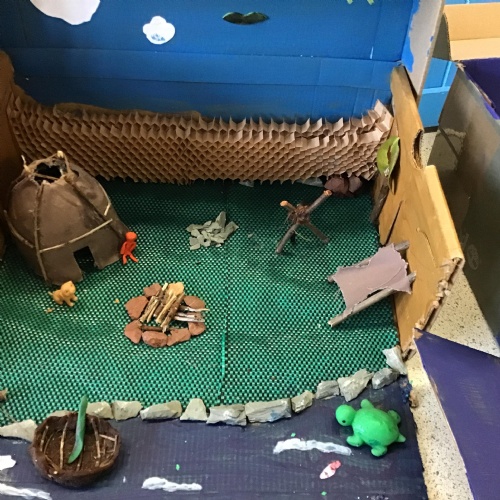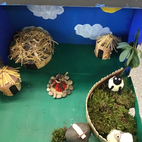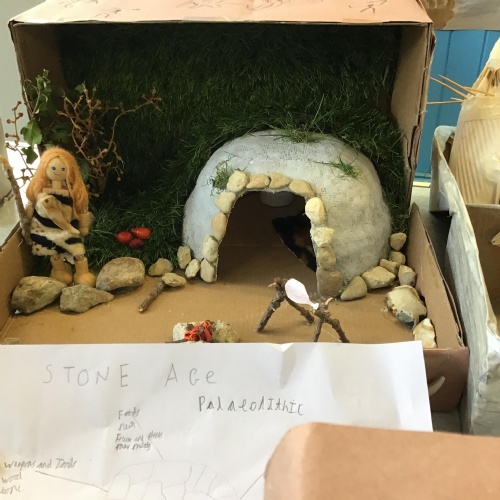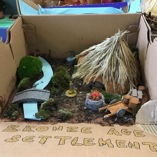 For home learning, the children were asked to create a prehistoric settlement diorama for either the Stone, Bronze or Iron Age.