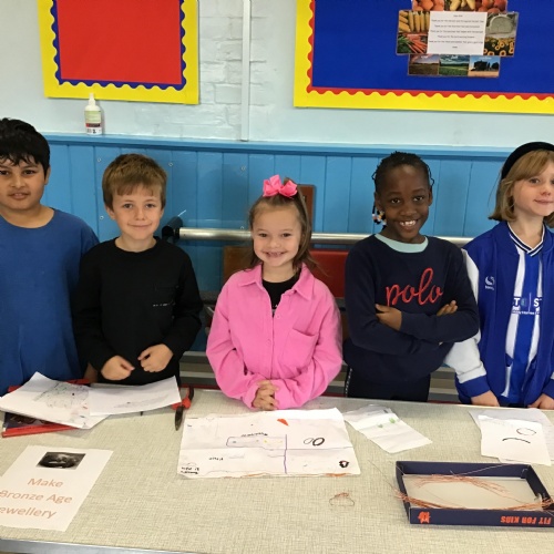 We invited our parents in and took them through a time tunnel of time, so they could learn about the Stone, Bronze and Iron Age. The feedback comments were lovely.