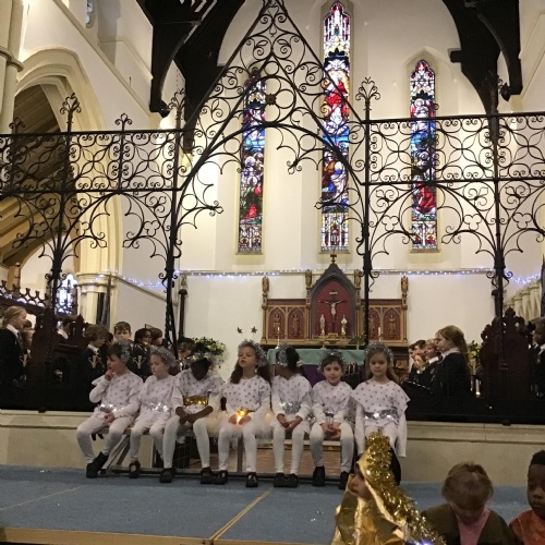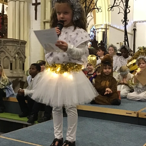 St Mark's performed a beautifully sparkly nativity, titled "The Twinkly Nativity" in front of a packed audience in St Mark's church. Seven gleaming stars told a very special story and gave the message of God's love at Christmas to everyone. The Infants thoroughly enjoyed learning the songs and bringing the playscript to life. They were extremely well supported by the Juniors who sang several toe tapping carols from the choir stalls. Our thanks to Rev Stephen Mourant who shared prayers and blessings for Christmas.
