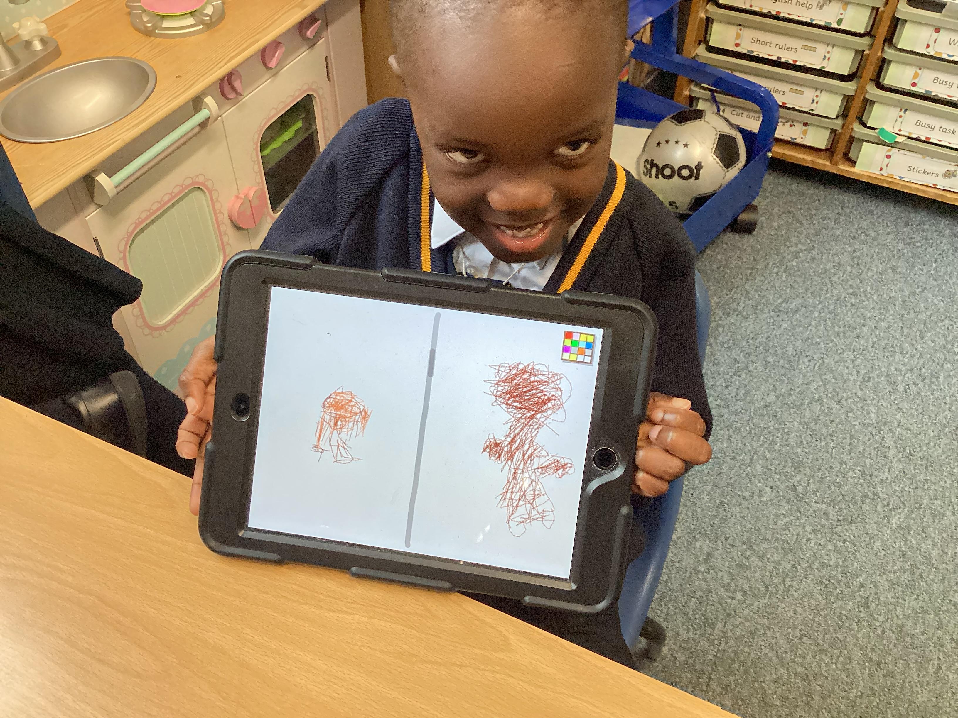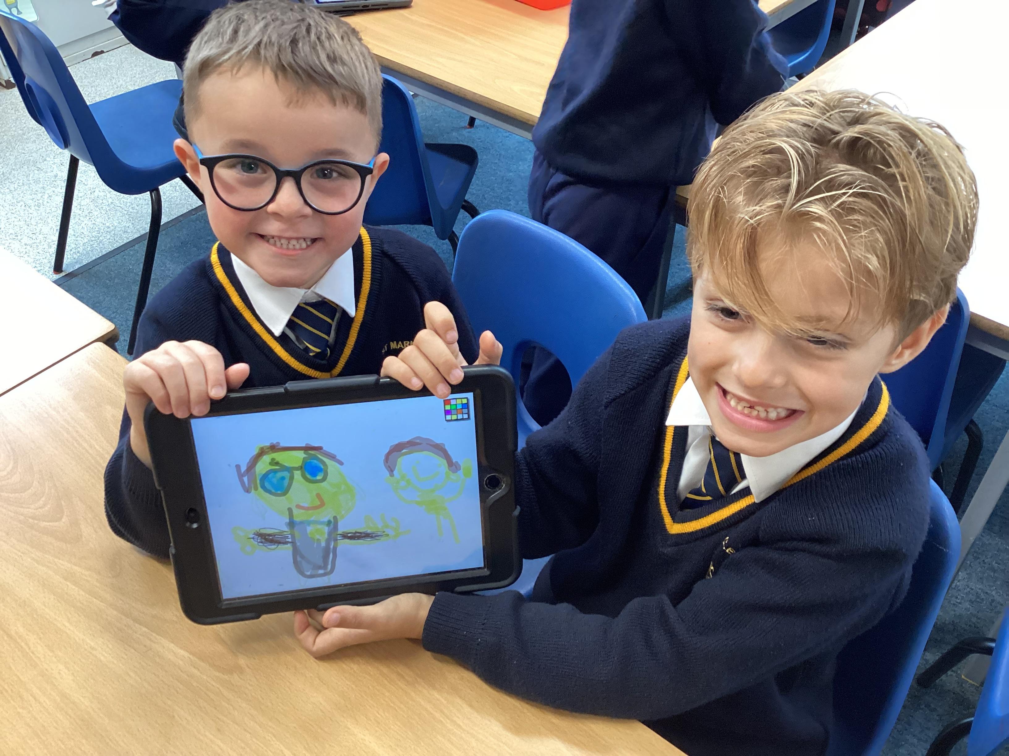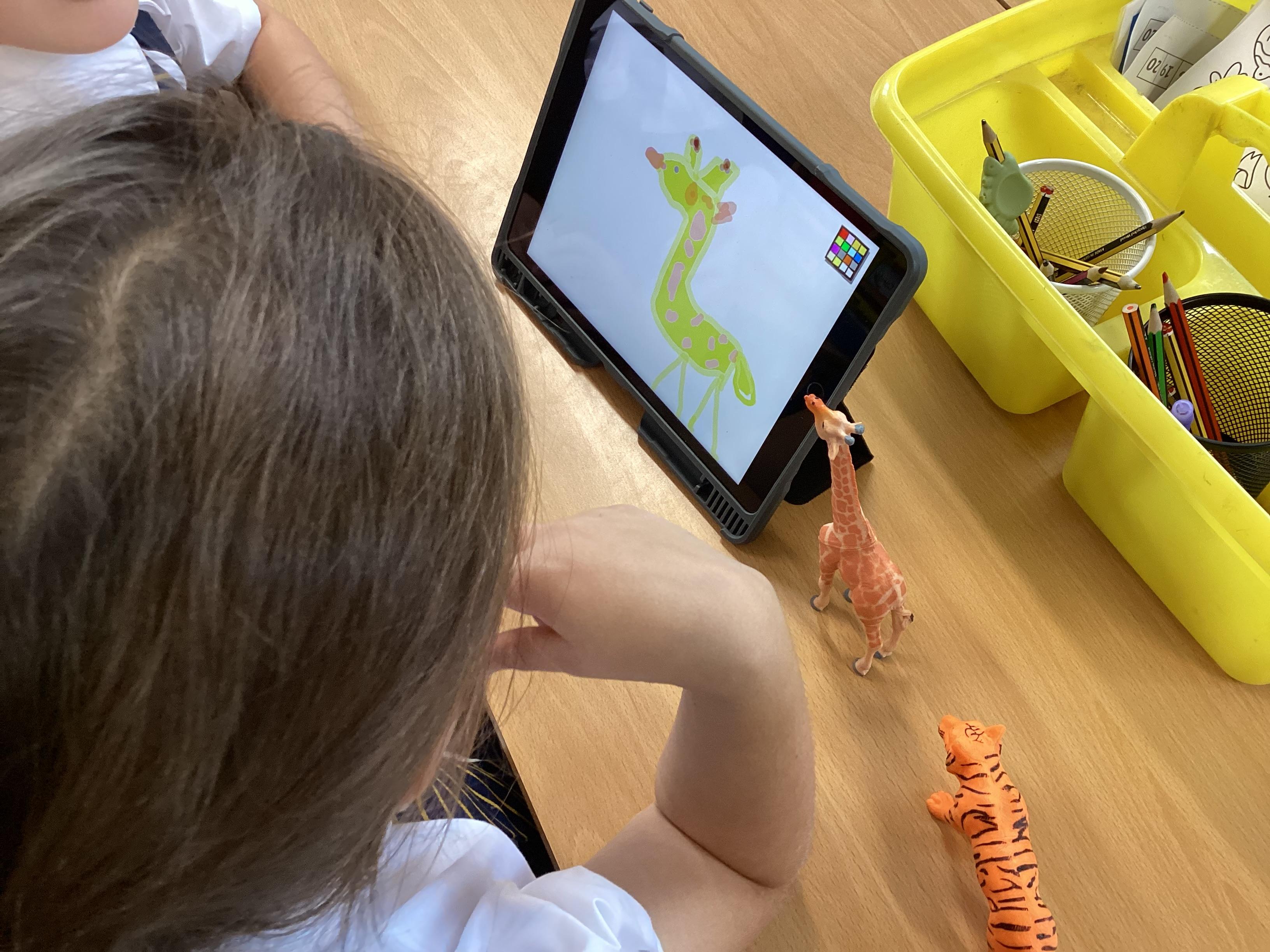 Emerald Class have used the ipads and found out how to draw and paint using technology. We used different types of pens and paint, learning how to change the size and the colour. We drew a portrait of our partner and then look at some of our favourite animals.
