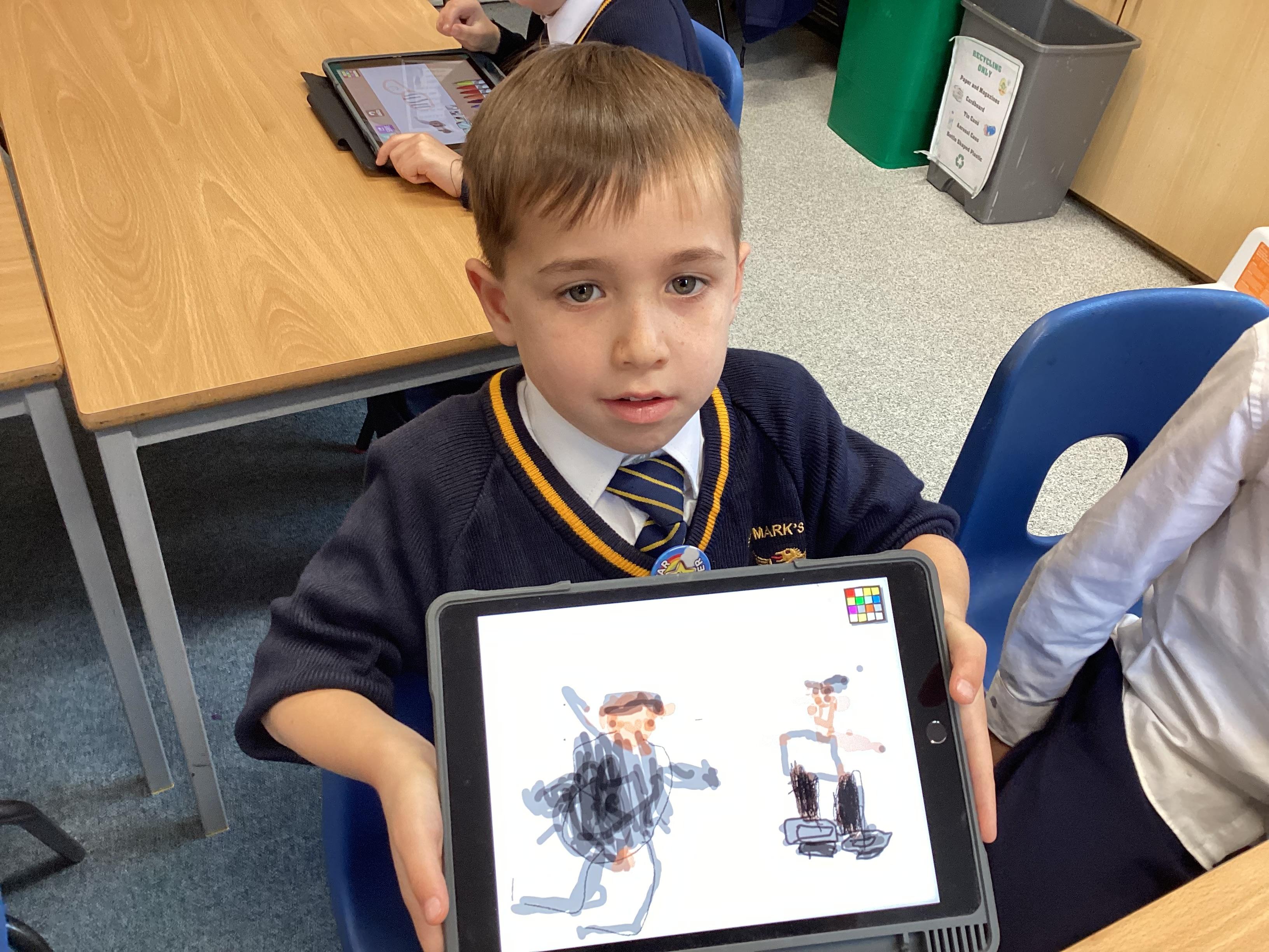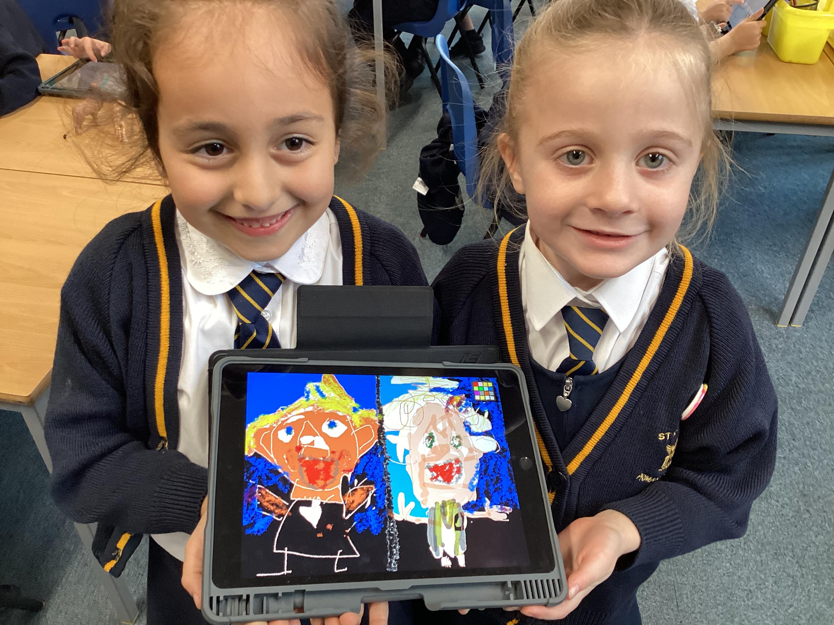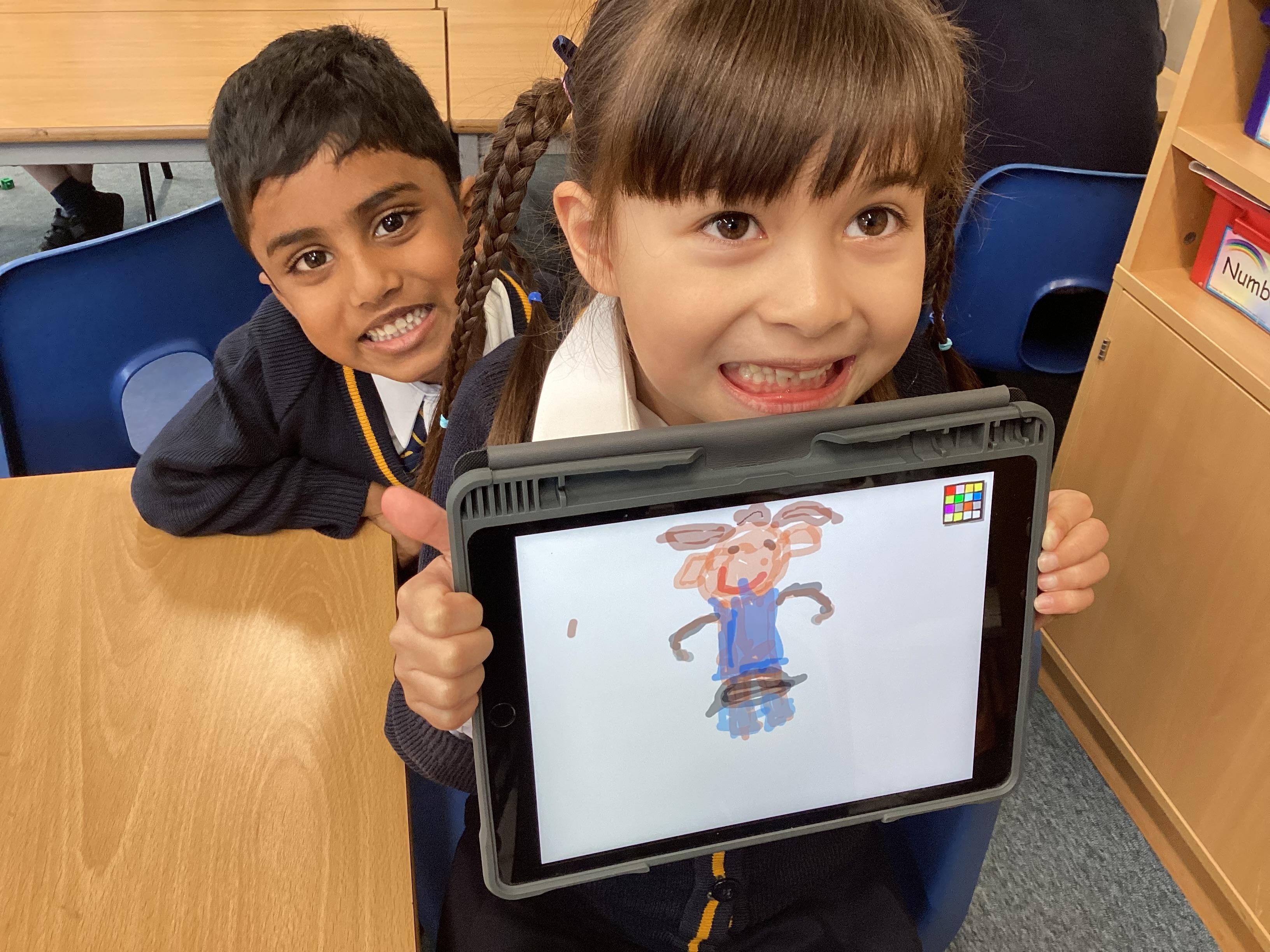 Emerald Class have used the ipads and found out how to draw and paint using technology. We used different types of pens and paint, learning how to change the size and the colour. We drew a portrait of our partner and then look at some of our favourite animals.