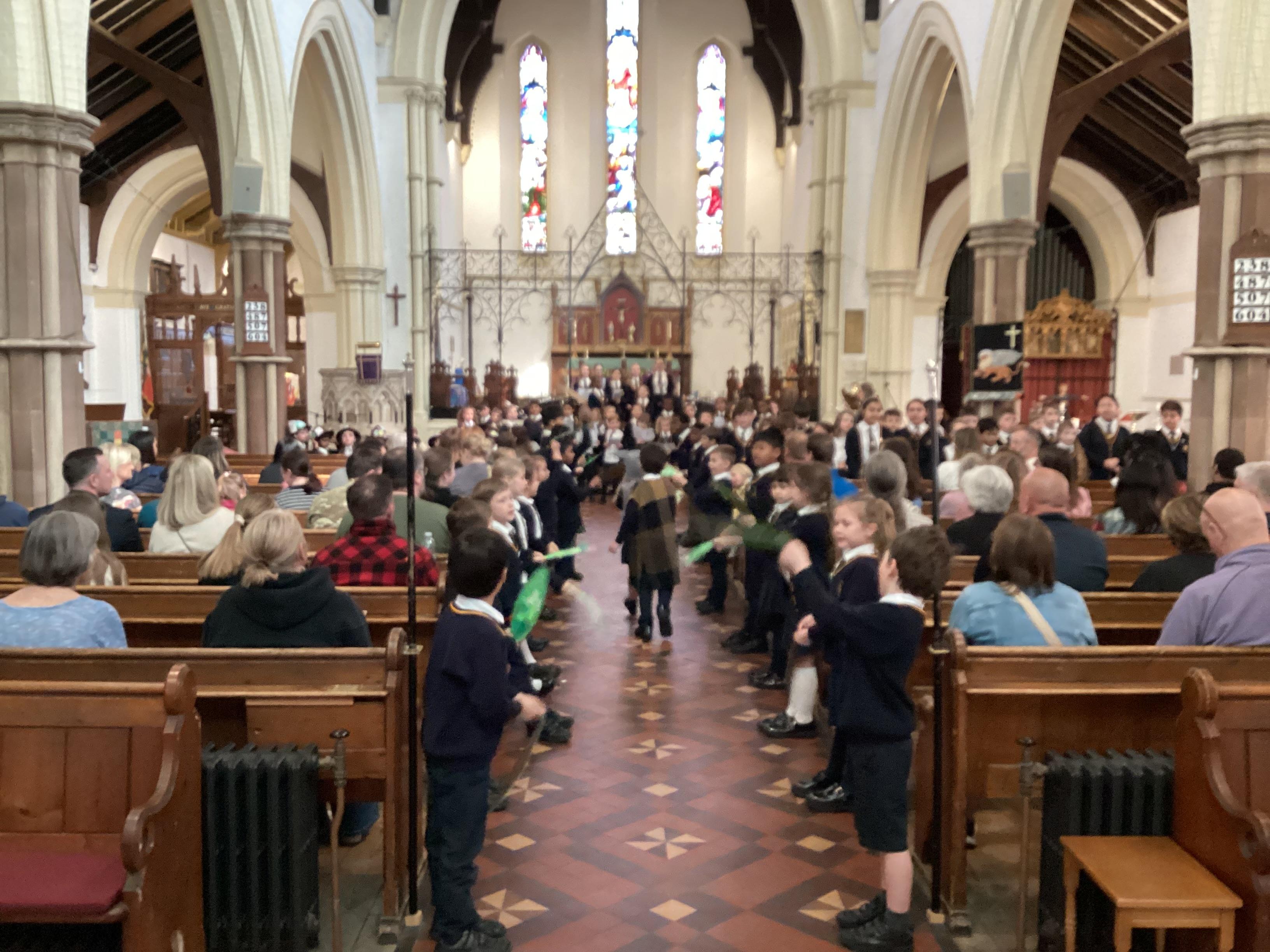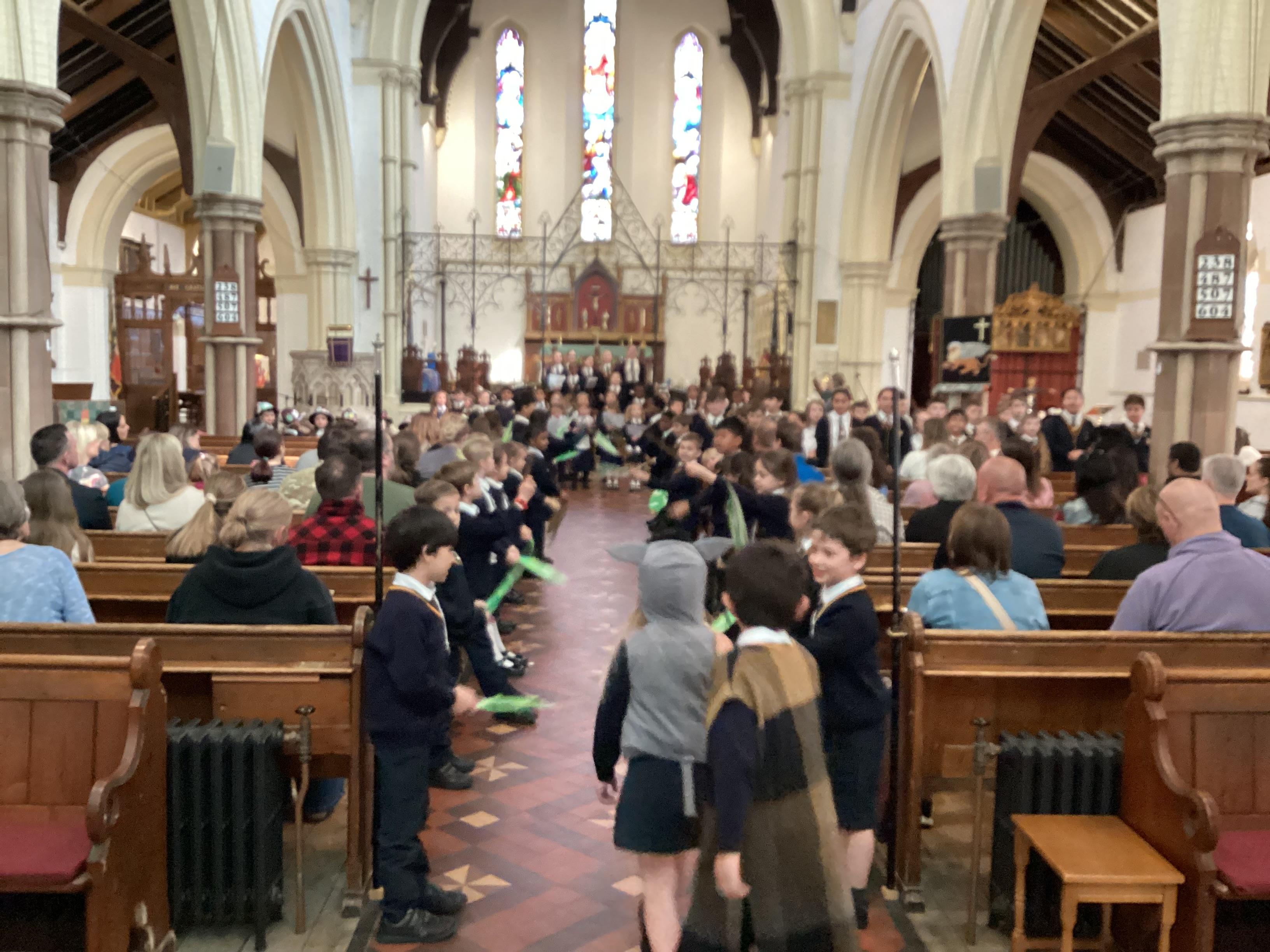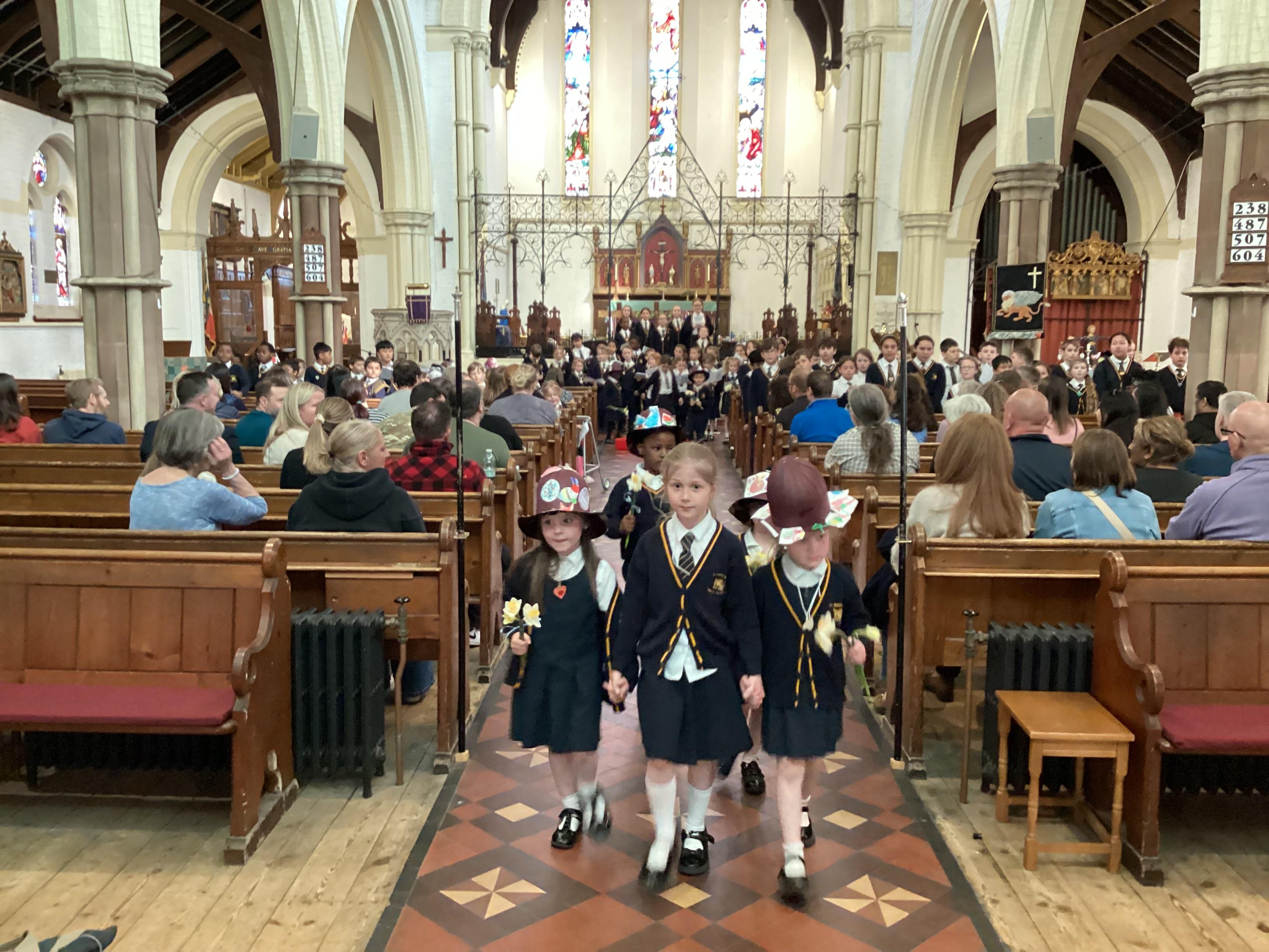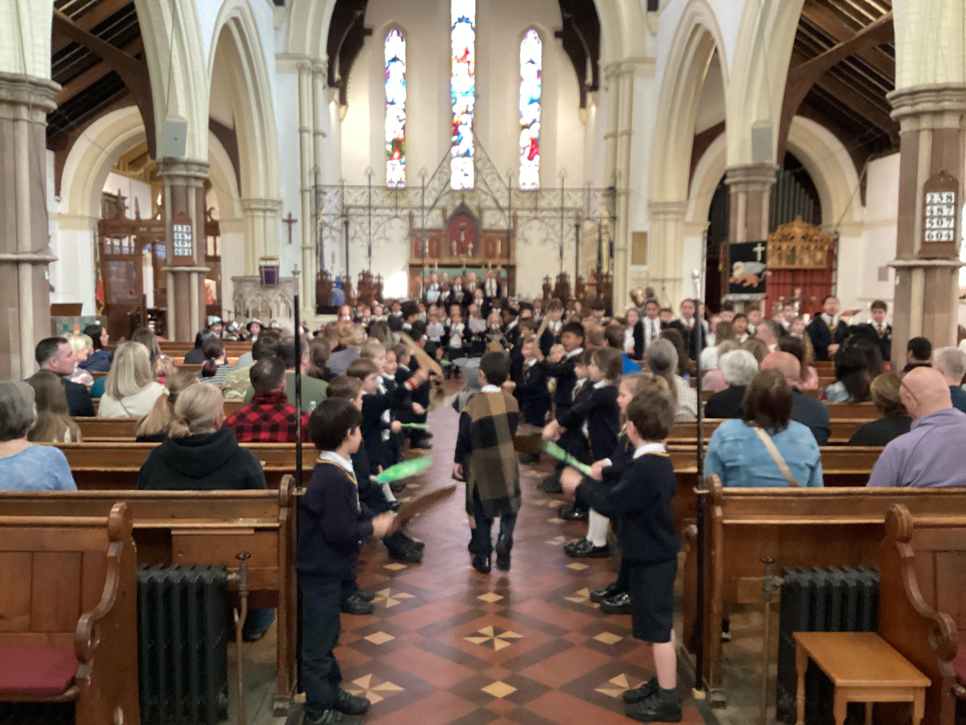 At the church, each class presented a different part of the Easter story through poems, artwork and songs. The choir performed solos accompanied by children playing “the shakey eggs” and glockenspiels. The spirituality team said a fitting poem to conclude the service.