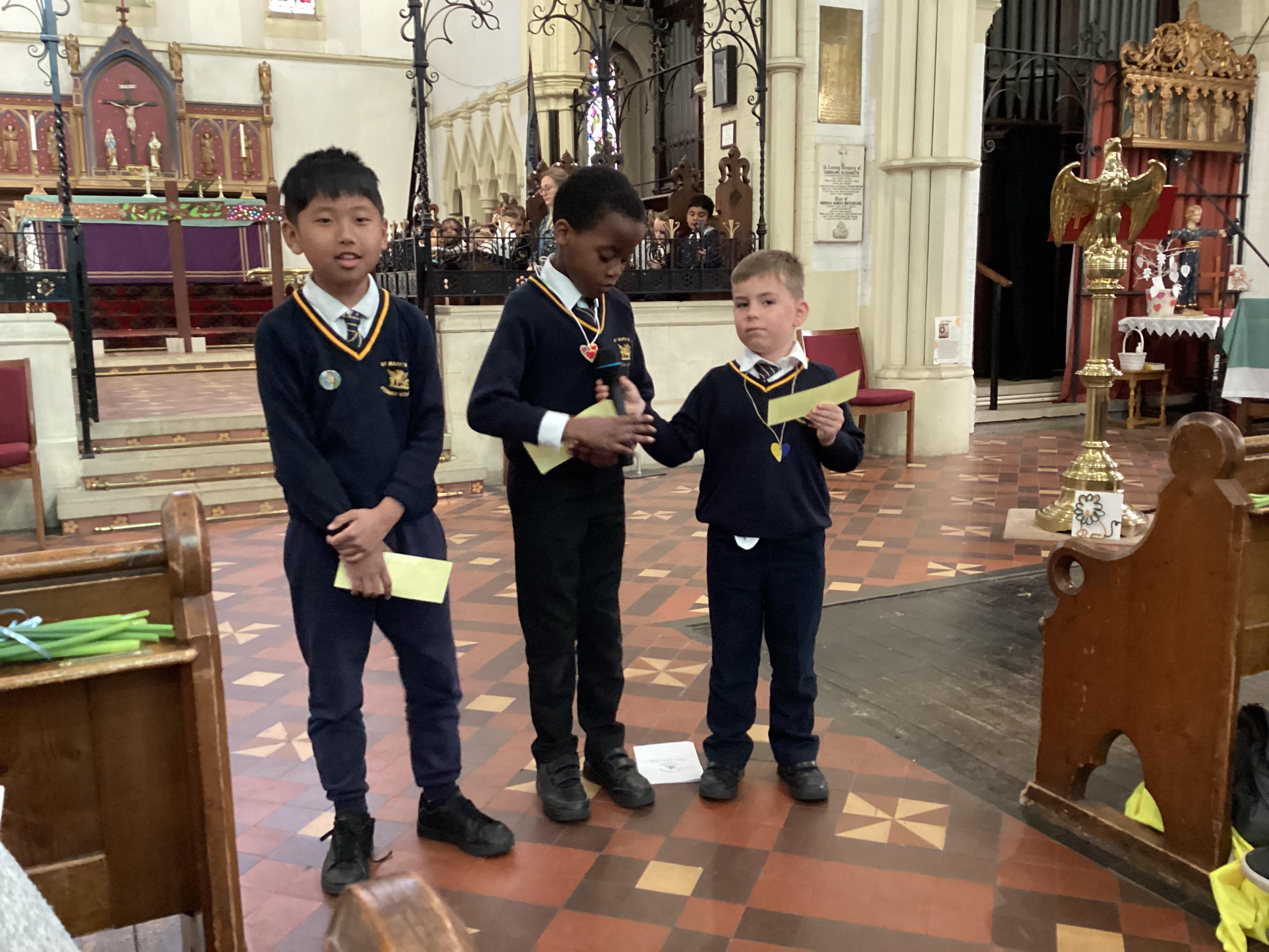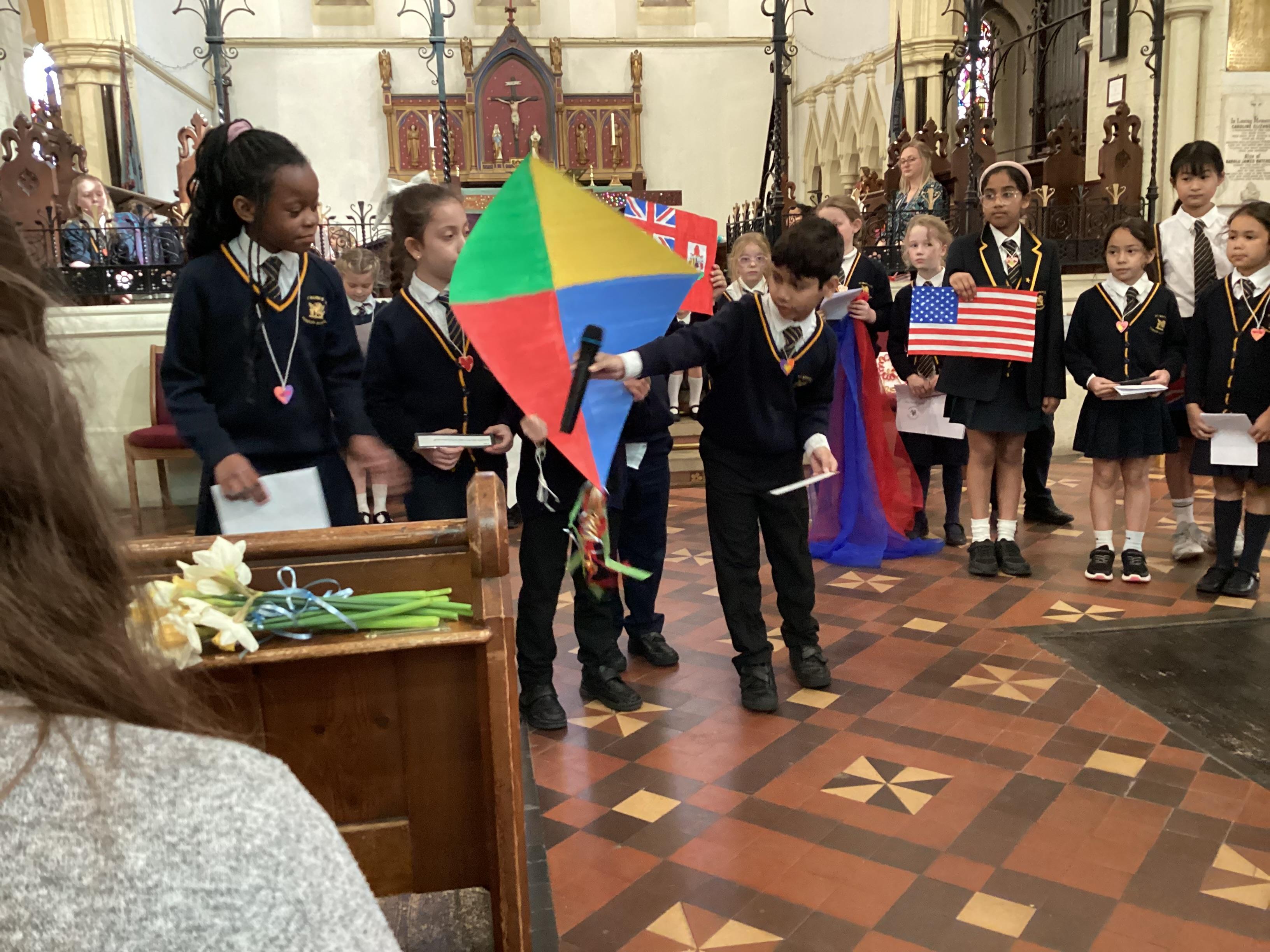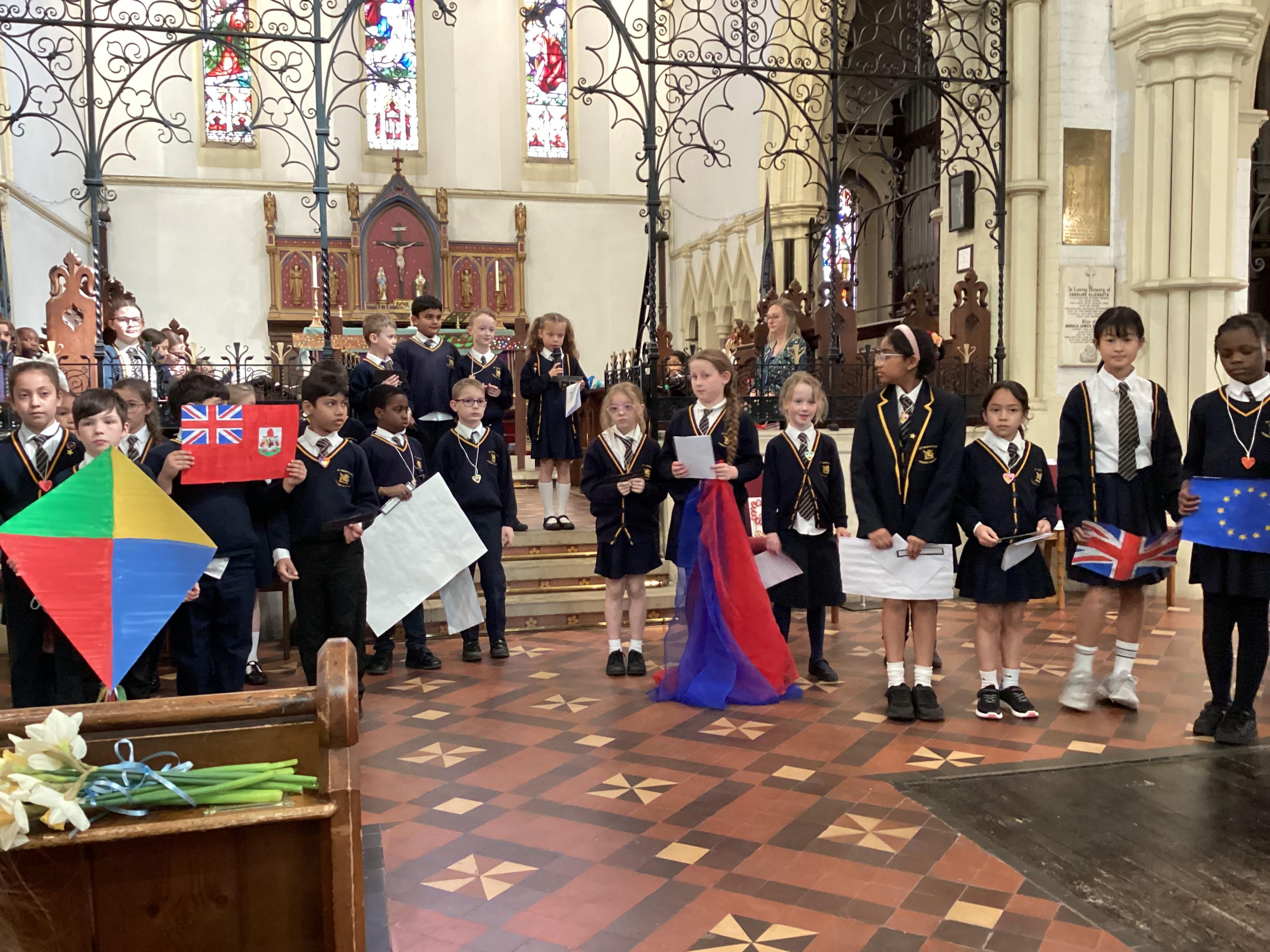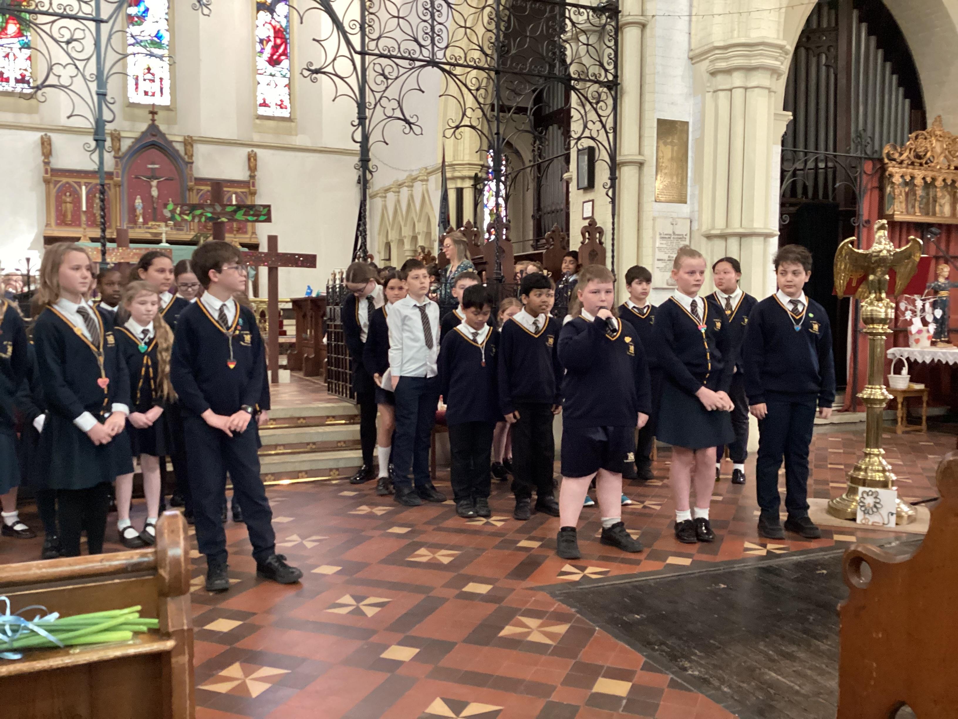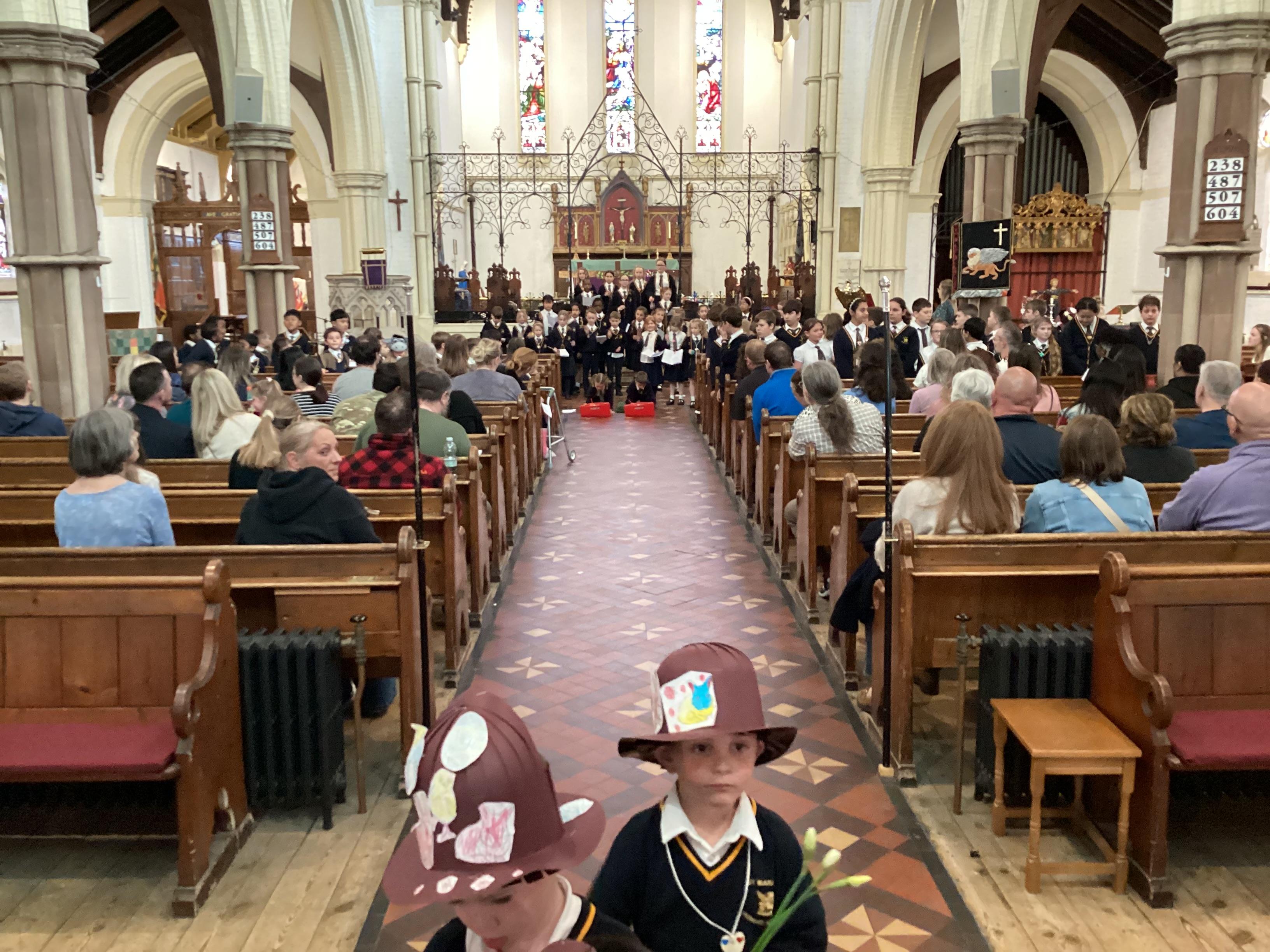 At the church, each class presented a different part of the Easter story through poems, artwork and songs. The choir performed solos accompanied by children playing “the shakey eggs” and glockenspiels. The spirituality team said a fitting poem to conclude the service.