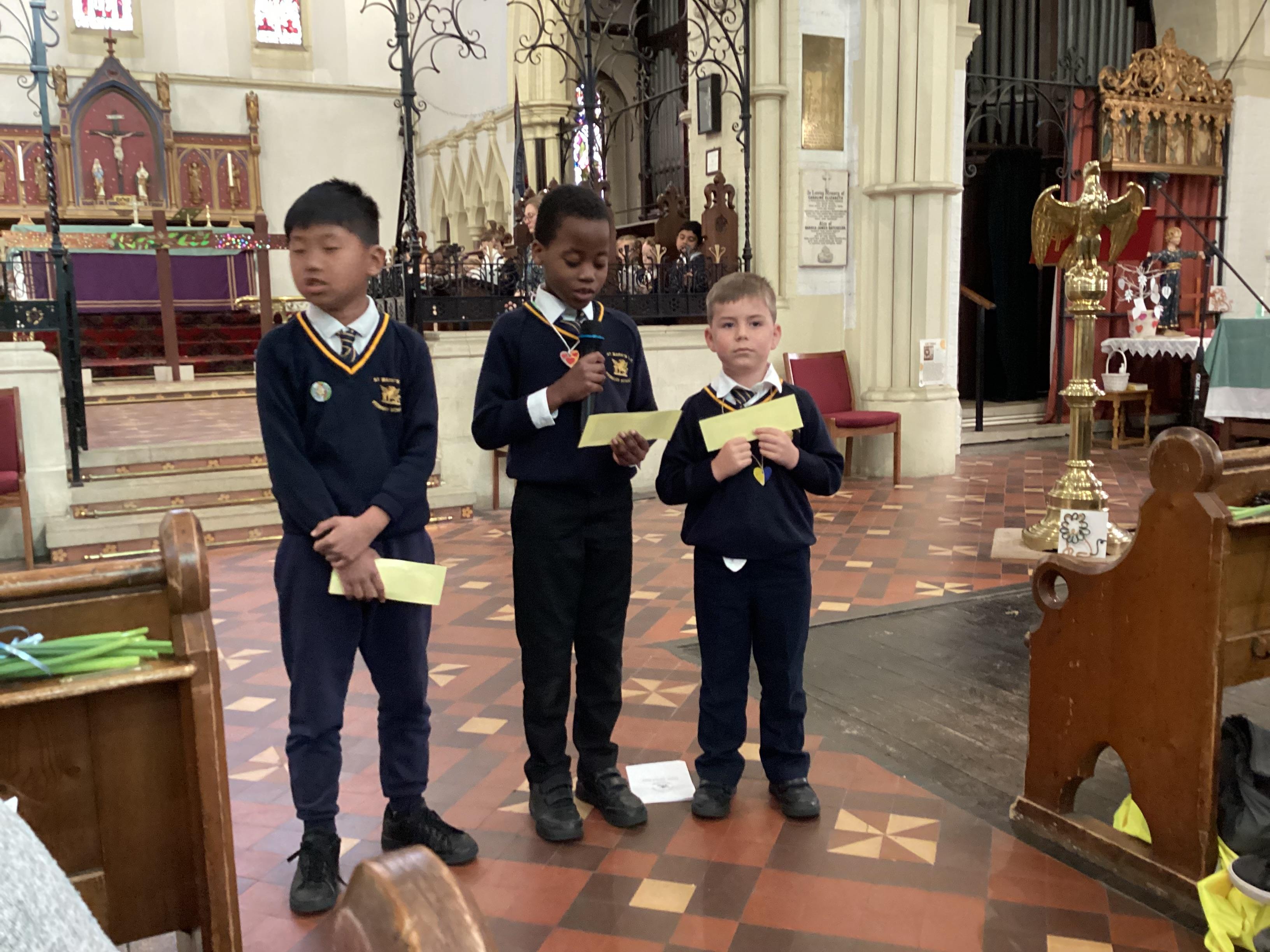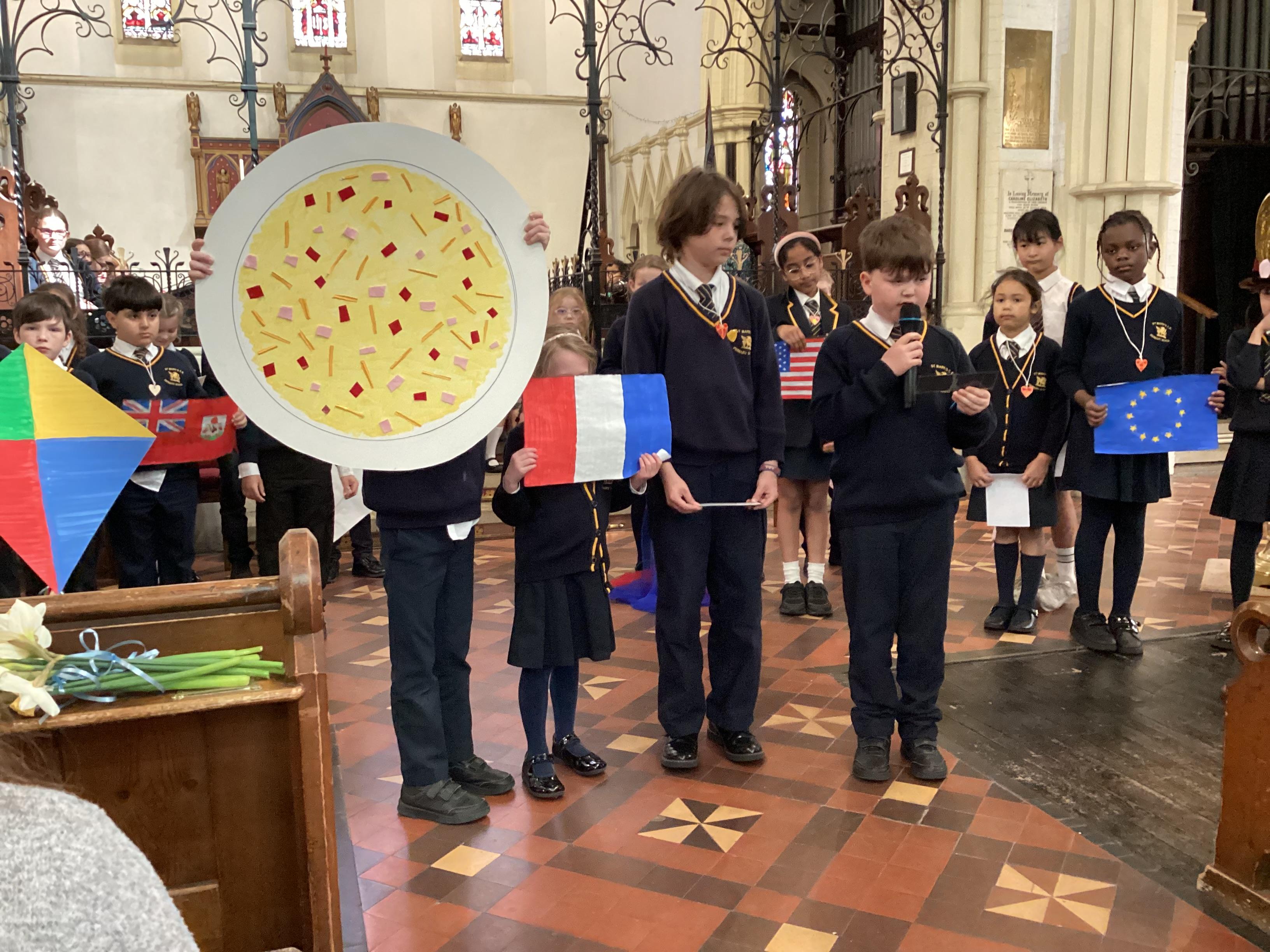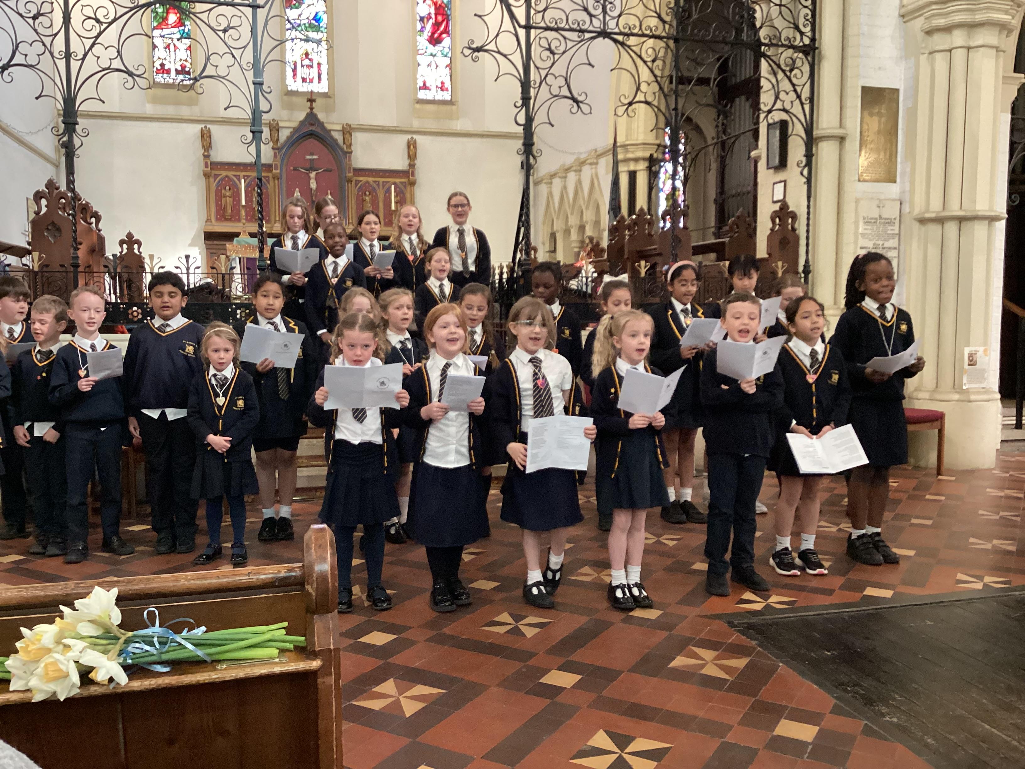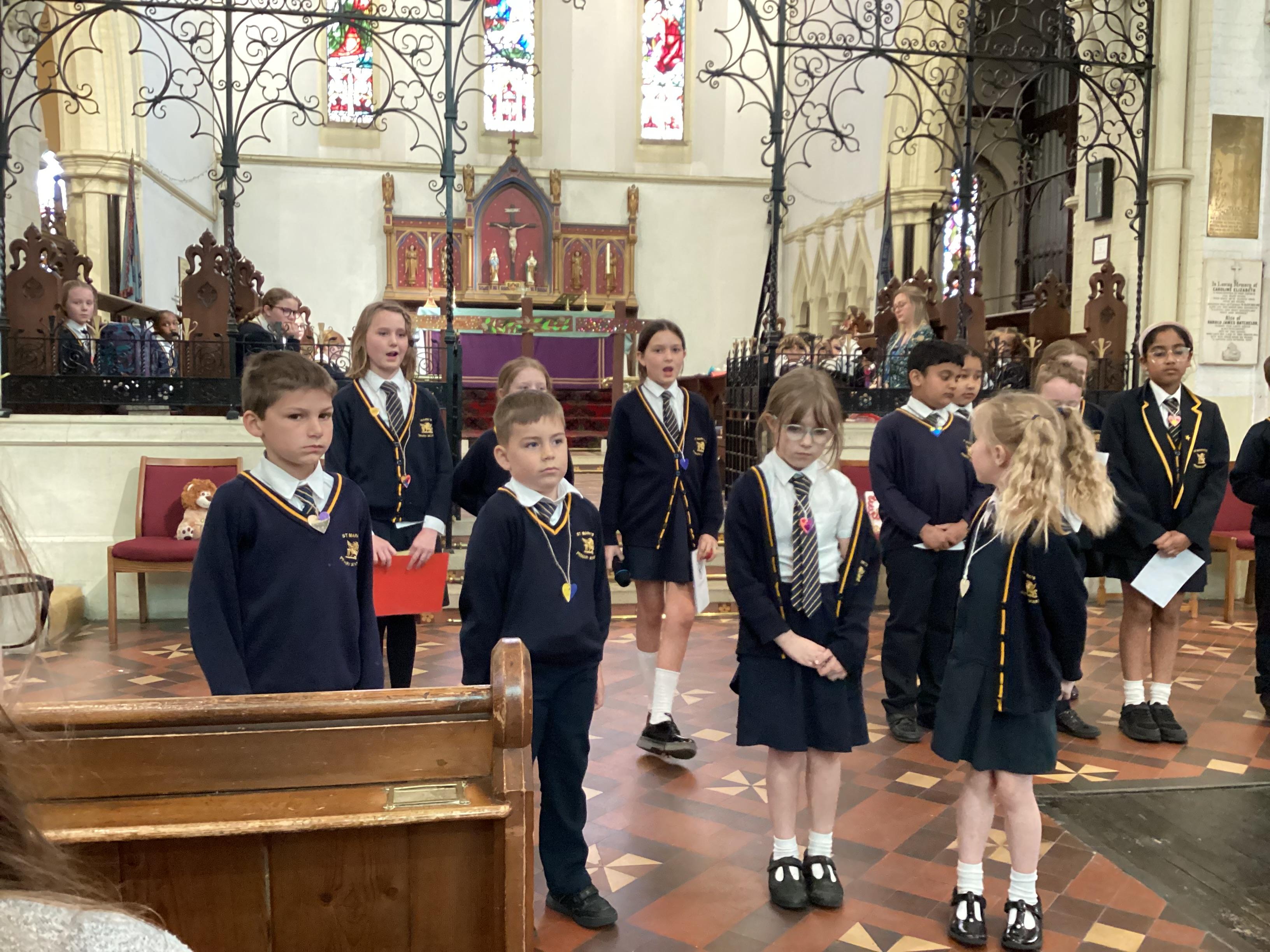 At the church, each class presented a different part of the Easter story through poems, artwork and songs. The choir performed solos accompanied by children playing “the shakey eggs” and glockenspiels. The spirituality team said a fitting poem to conclude the service.