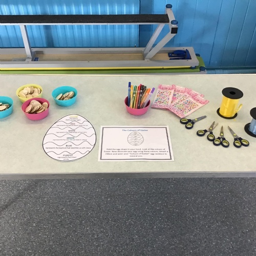 The Colours of Easter focusing on the meaning of the colours whilst decorating egg necklaces.