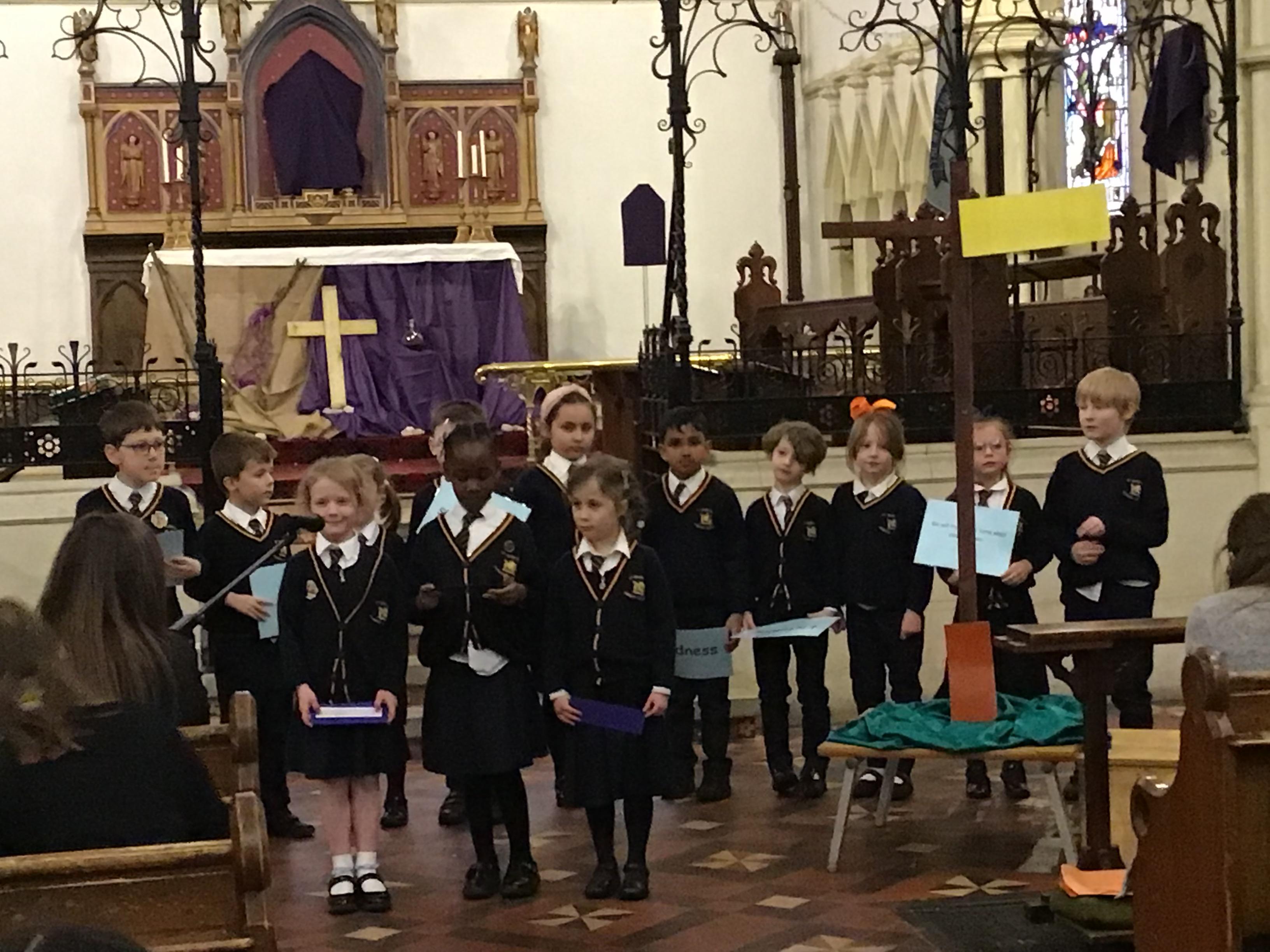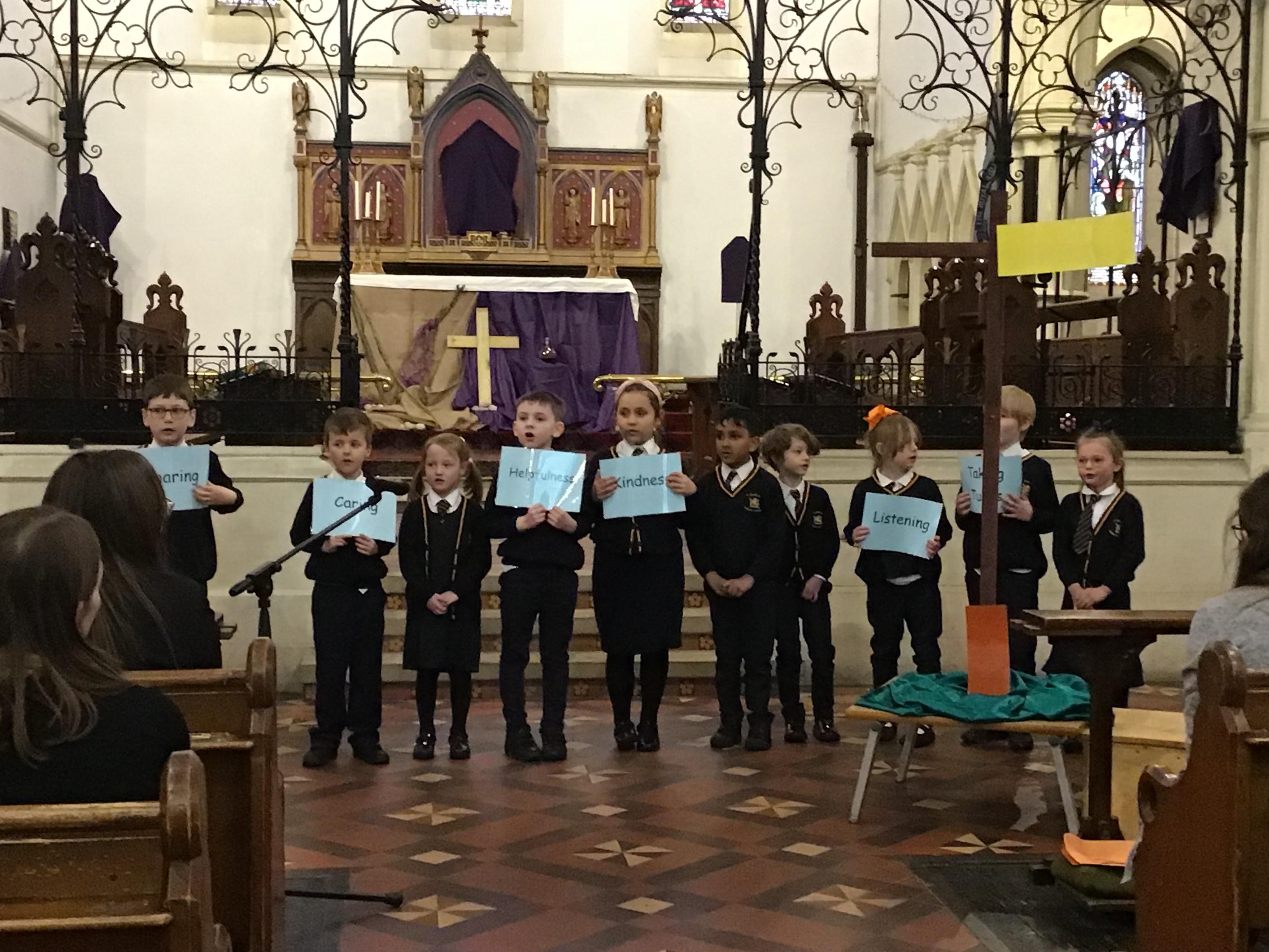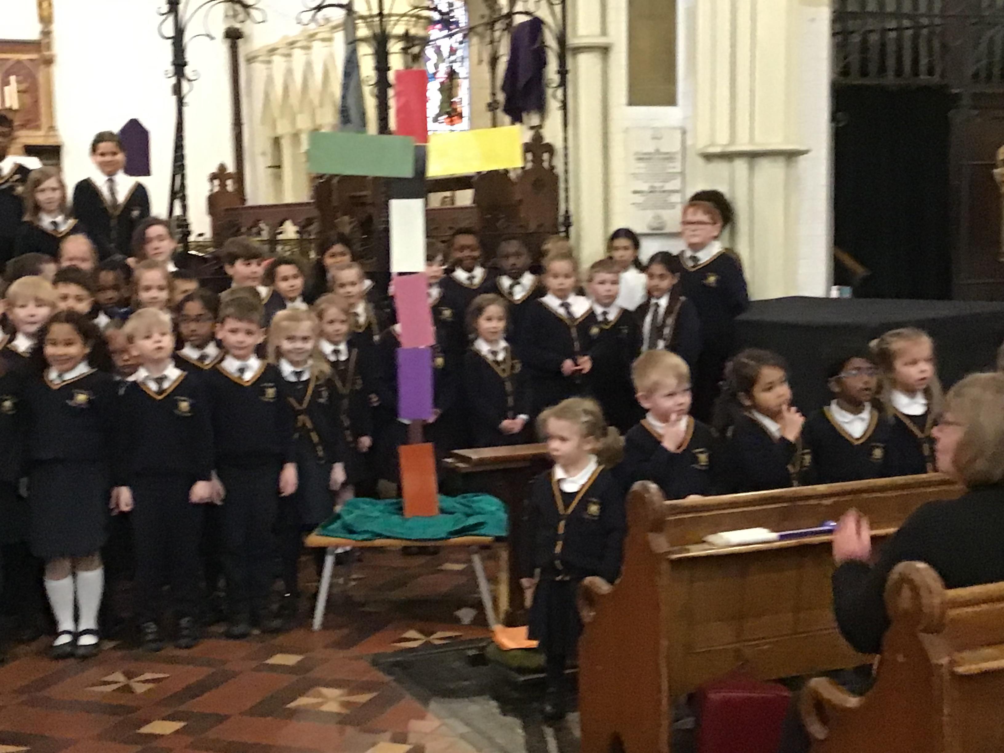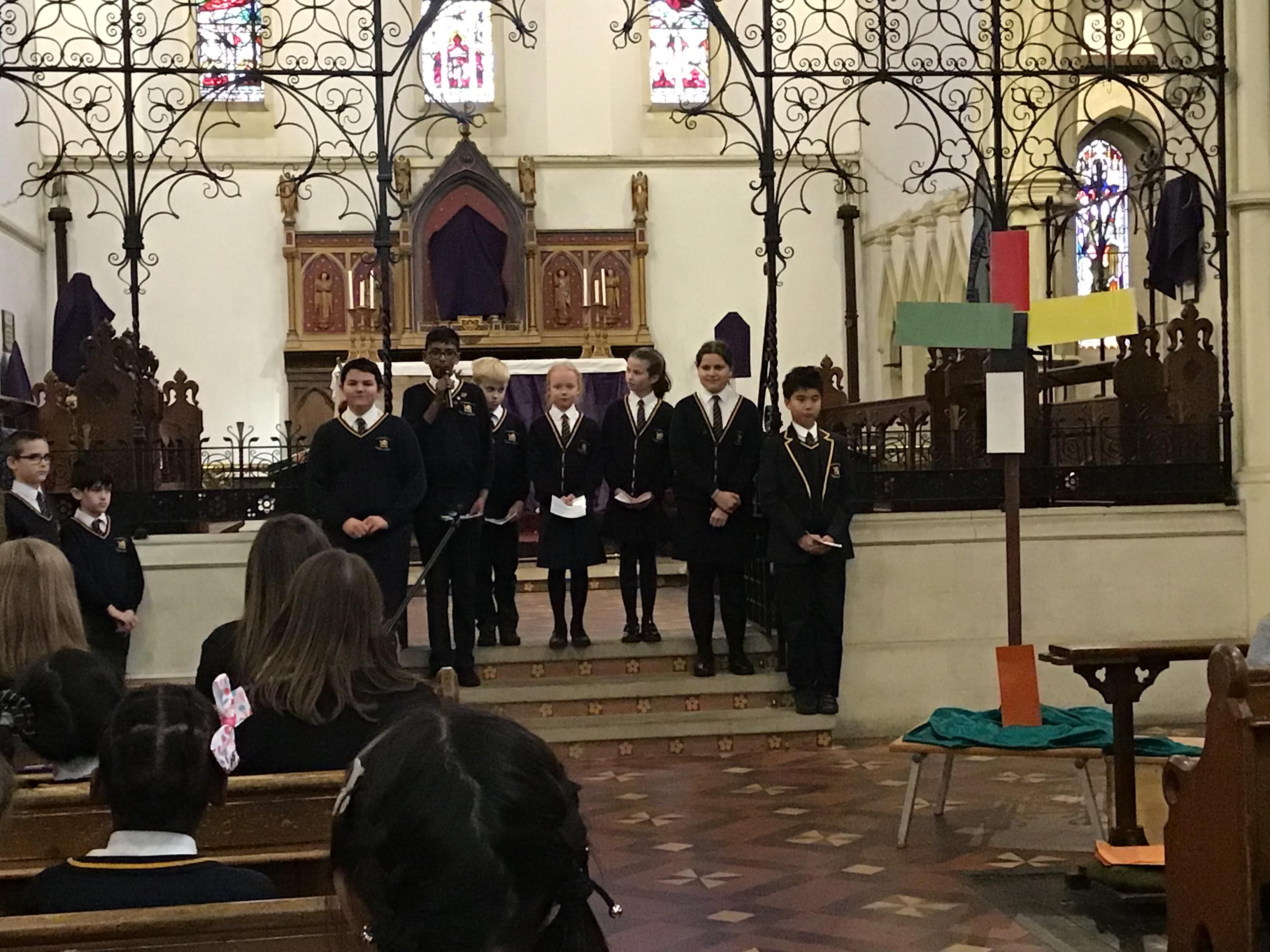 Each class took a colour and represented aspects of Jesus' life using poems, stories, drama and Bible readings. The colours were added to the cross making a visual reminder of each part.