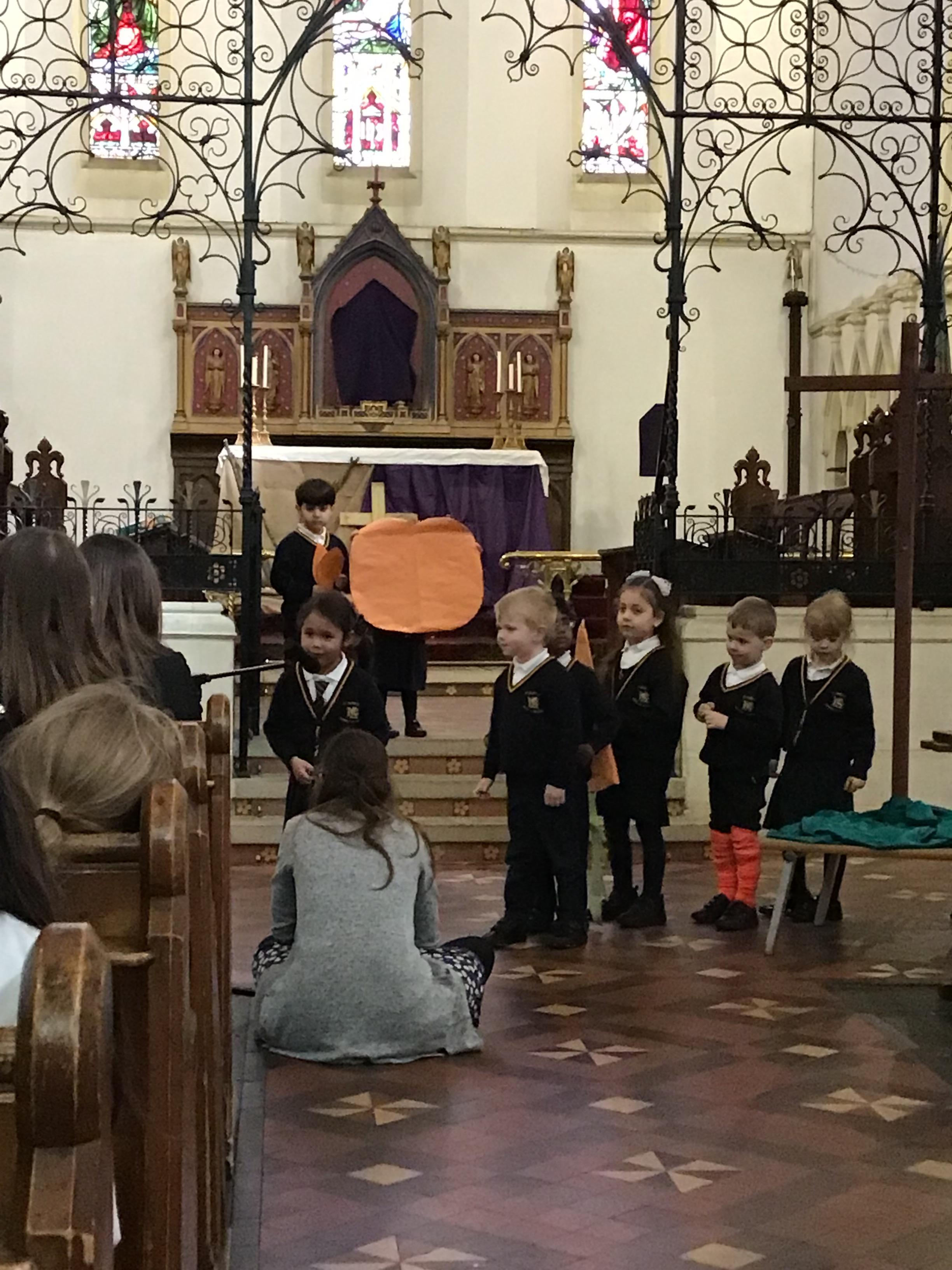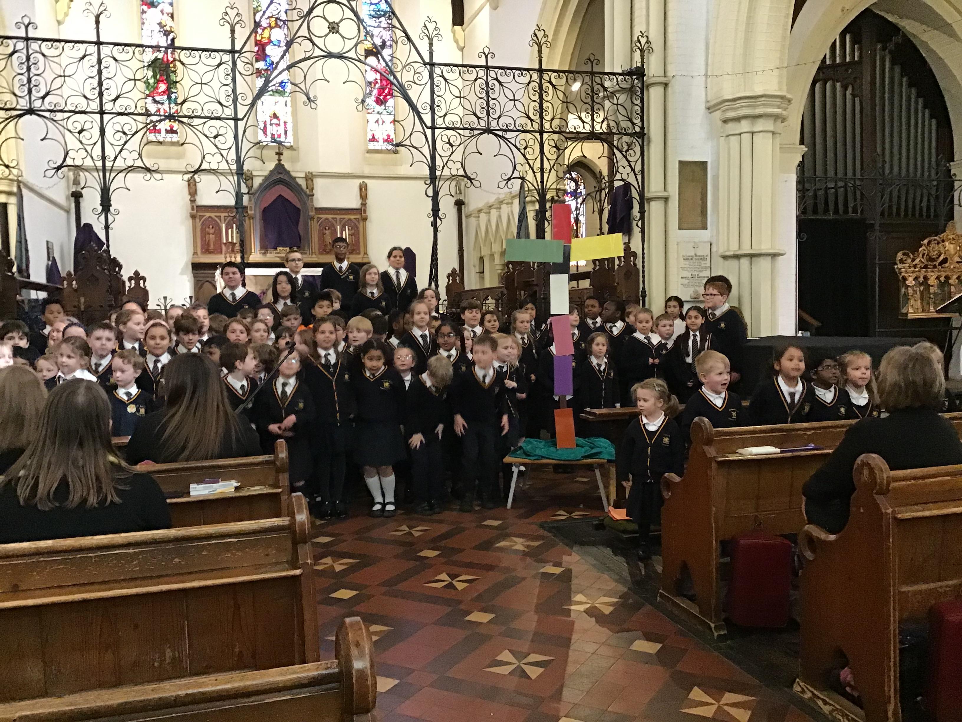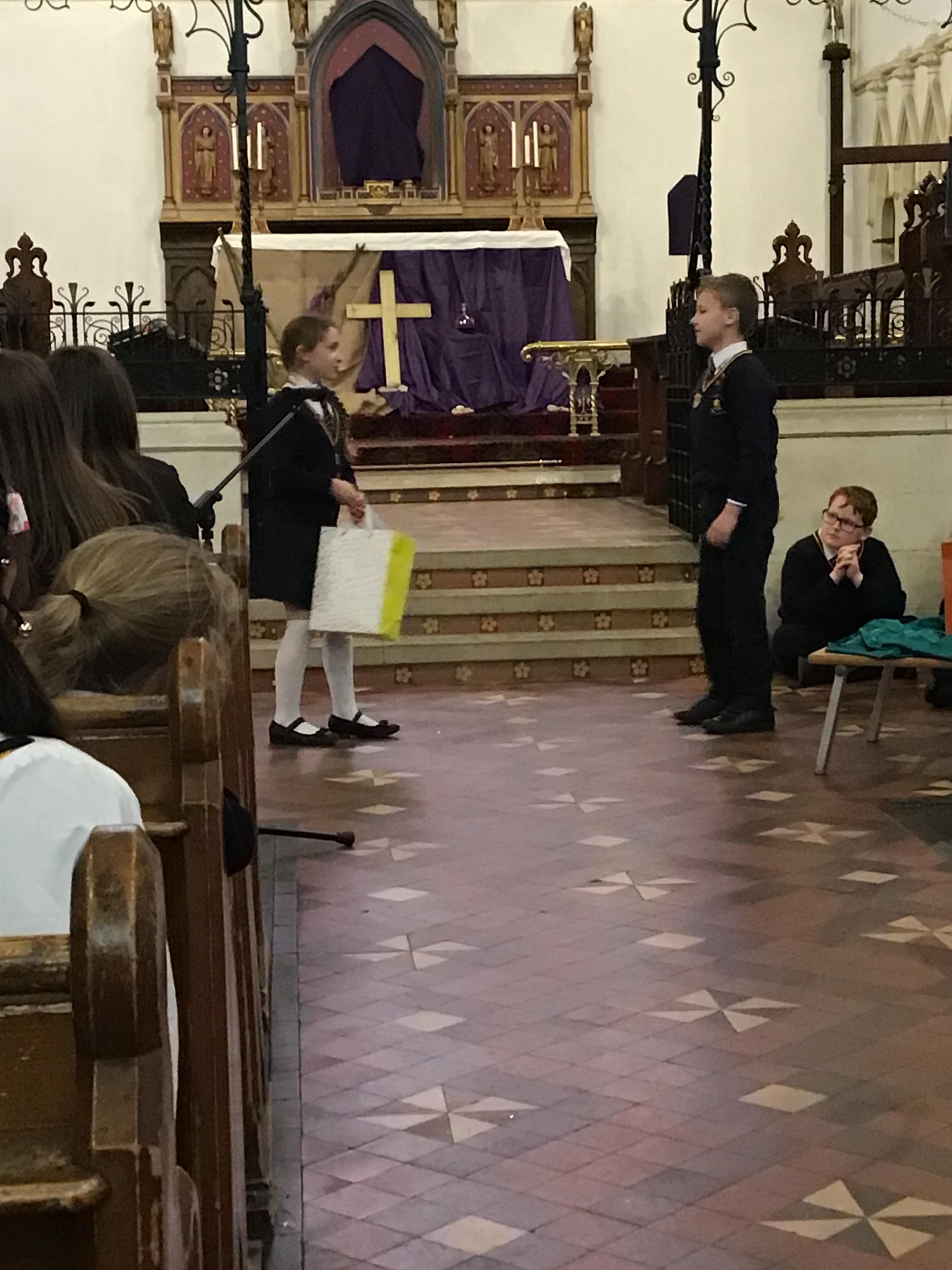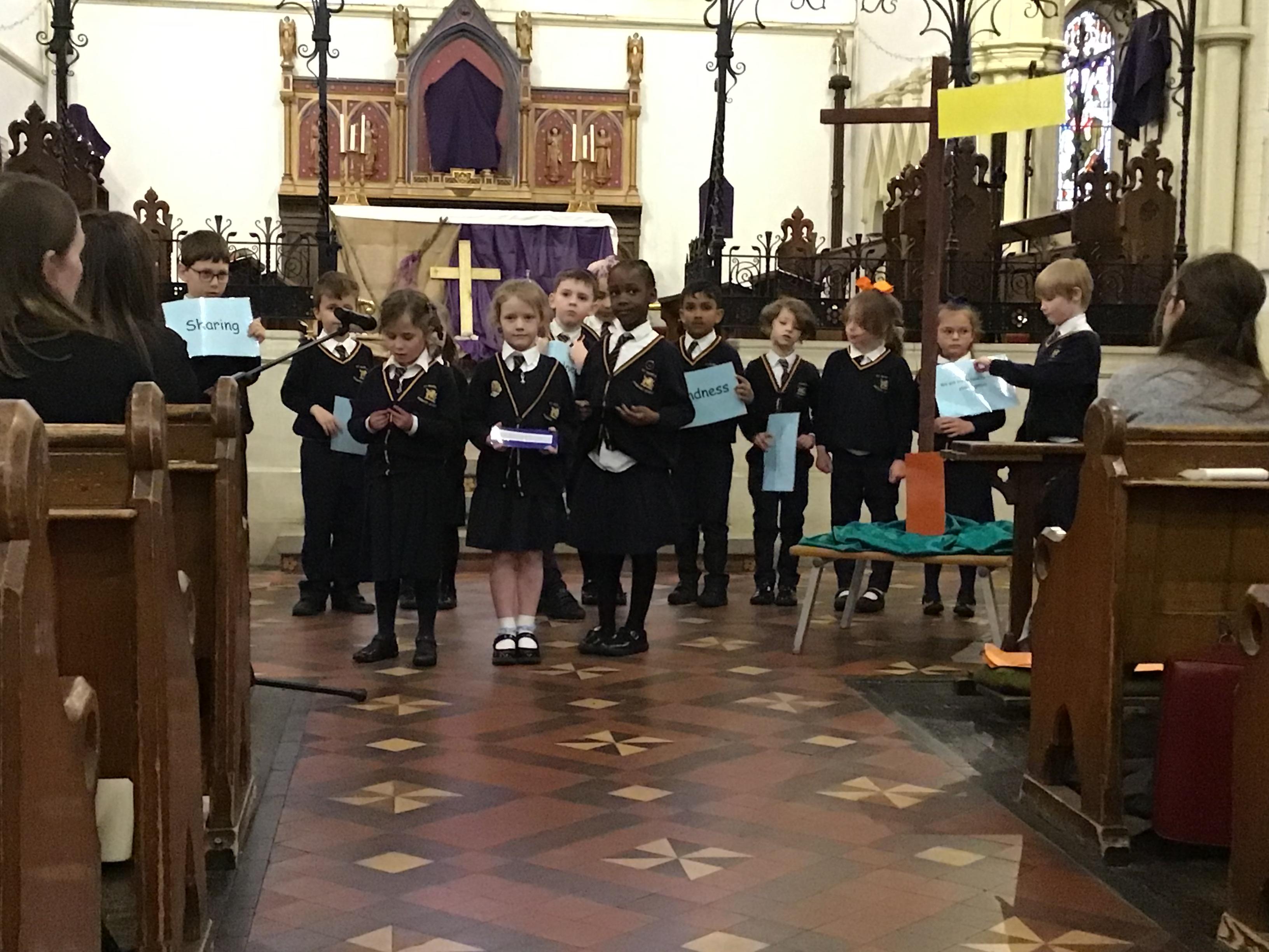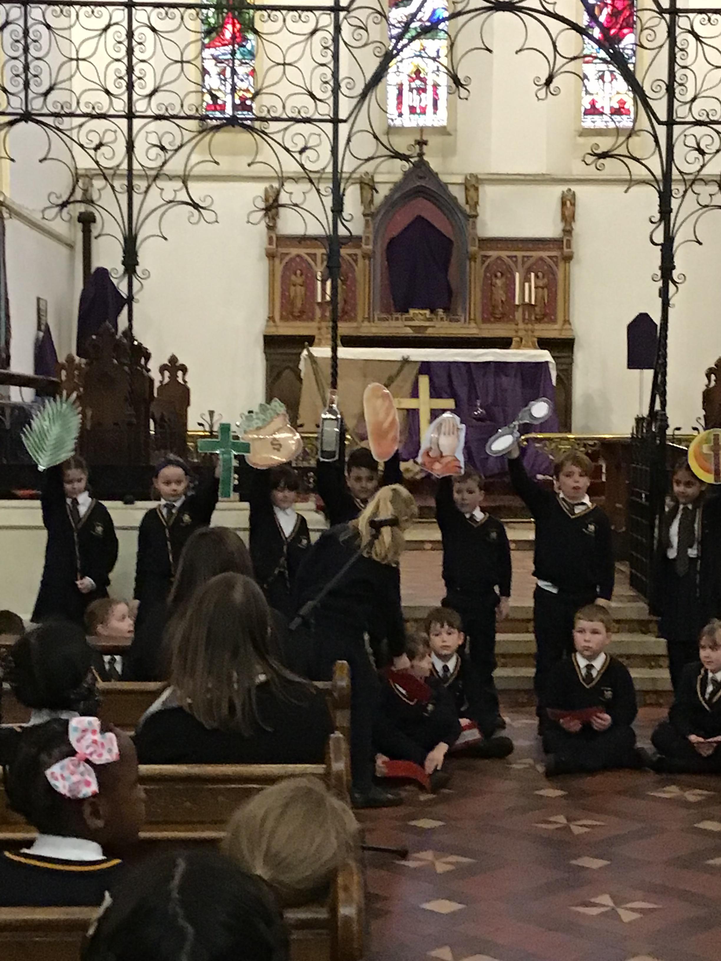 Each class took a colour and represented aspects of Jesus' life using poems, stories, drama and Bible readings. The colours were added to the cross making a visual reminder of each part.