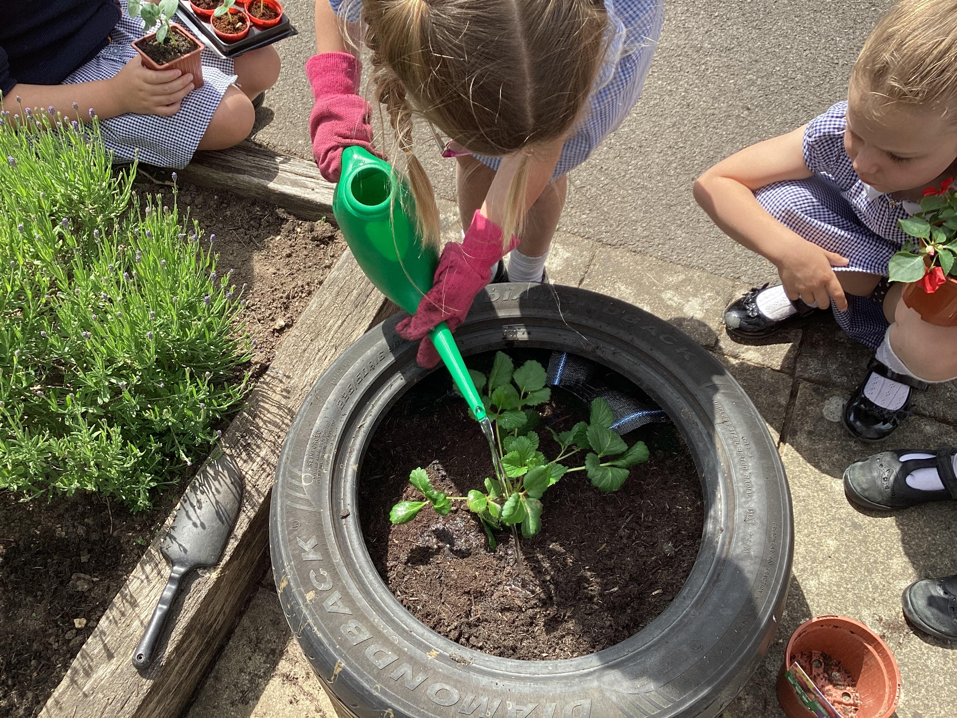 Inspired by their trip to Wisley and their parcel from Joe, children decide to learn about plants, how they grow and how to look after them. The school garden will be the ideal place to become extraordinary gardeners ourselves, Joe will set the children challenges via the ‘Apple Tree Display’ and they can answer him by writing on leaves with what they find out. They will tell him how to identify and name common plants and trees, explain the structure of a plant, introduce the life cycle of a bean, look at how plants are suited to their habitat and find out why plants need light, water and warmth to grow. The children will show us all what they have learnt by looking after and planting out the school garden. Back in the classroom they will write descriptions of the extraordinary parts of Wisley and explore narratives (Jack and the beanstalk). The children will also show Joe the beauty of plants and flowers by learning to sketch and use colour inspired by famous artist such as Georgia O’Keeffe and Van Gogh. This will all culminate in a garden party!