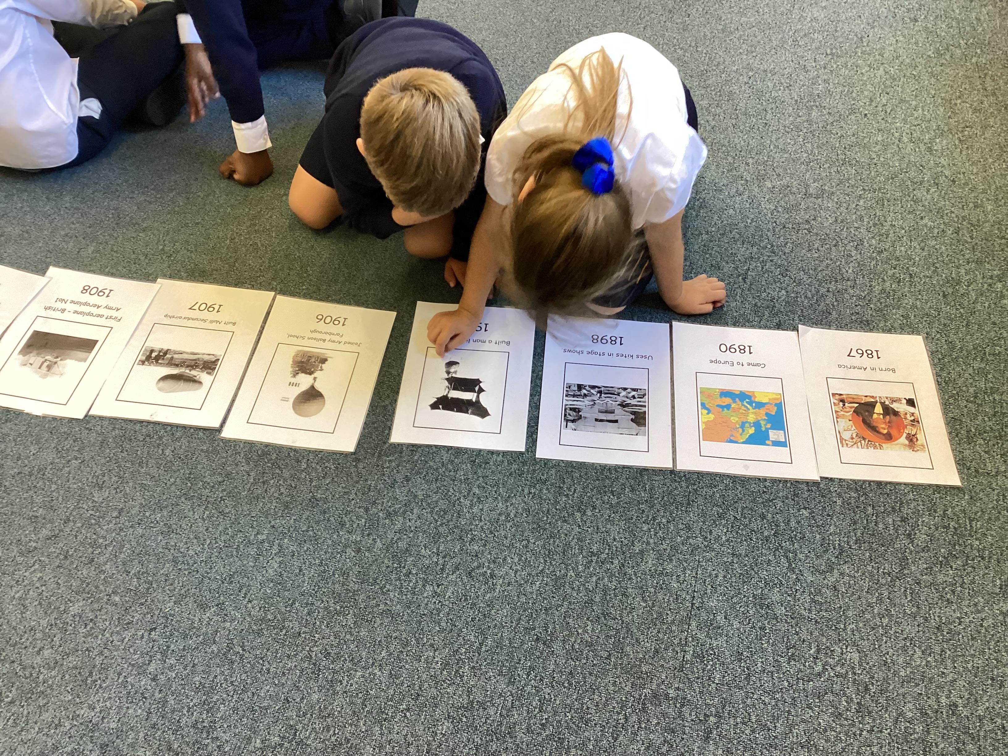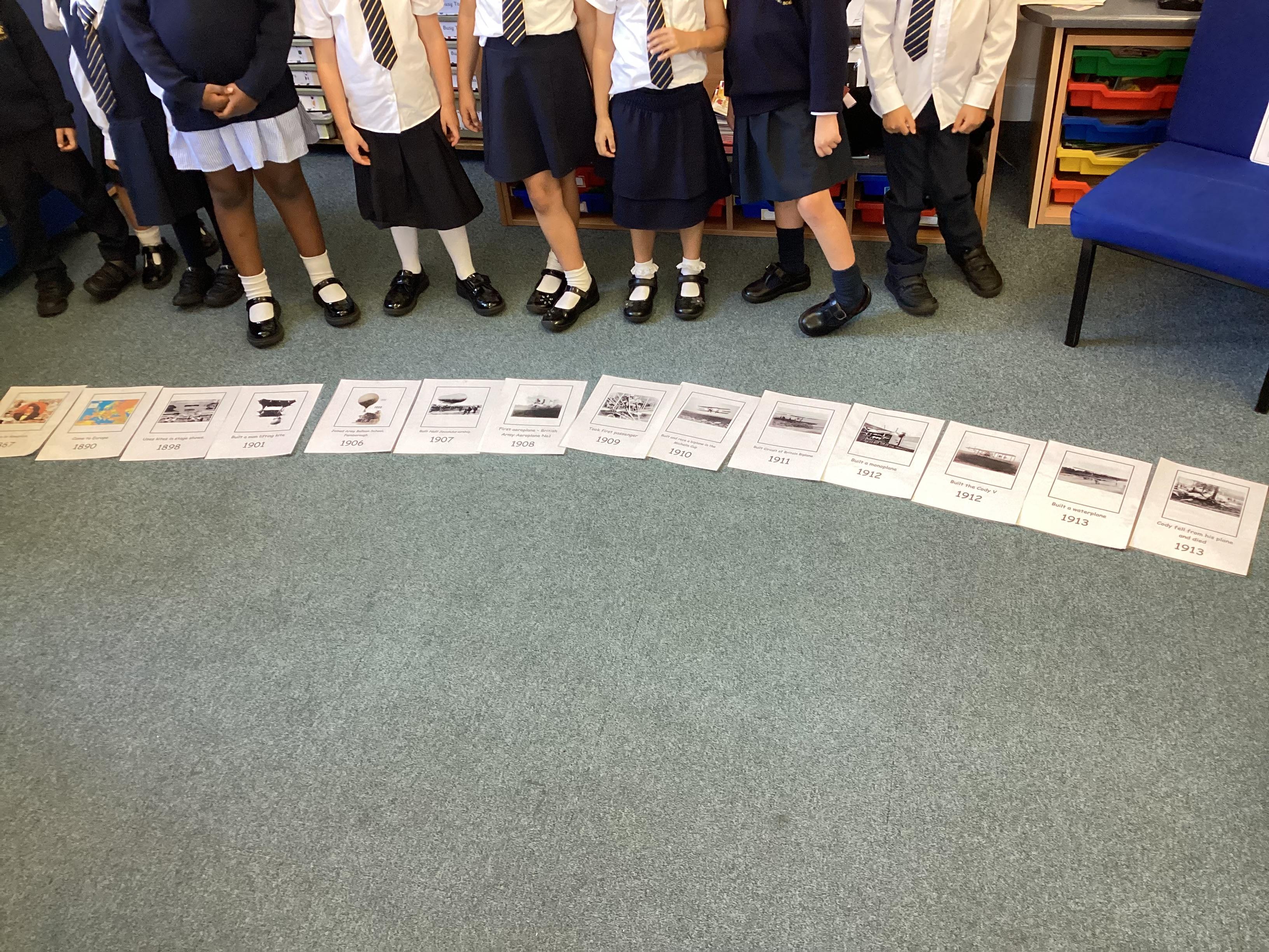 Mrs Smith tells the children that during the holidays she was trying to fly a kite while on holiday and it just would not fly, so we made paper aeroplanes instead! It was quite difficult to get them the right shape! The children are all challenged to see if they can make a piece of paper fly! This will then lead to a discussion about flight in Farnborough and the introduction of Samuel Cody and early flight.