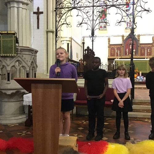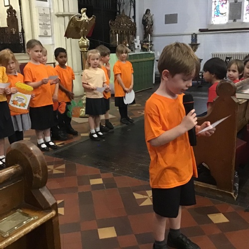 Each class celebrated a colour using songs, poems and drama. You can see our colourful Harvest in the photographs below.