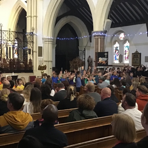Our service began with the children singing "Who put the colours in the rainbow?" to a full church of families and our local community.