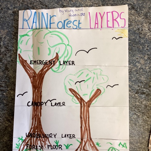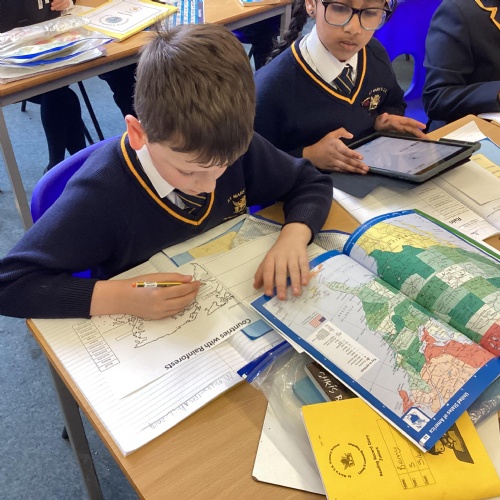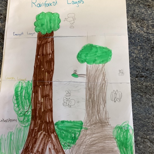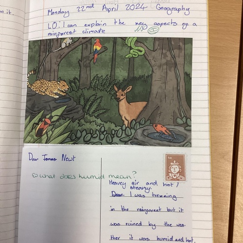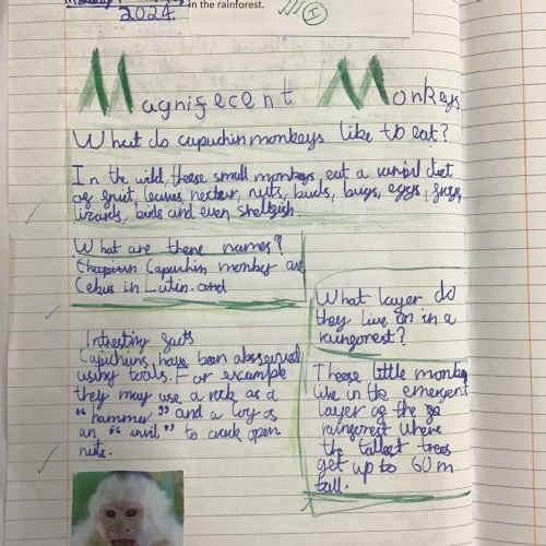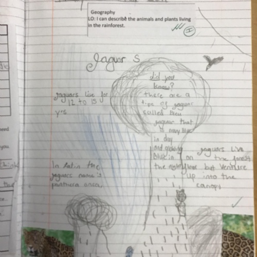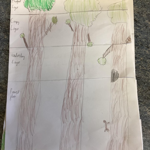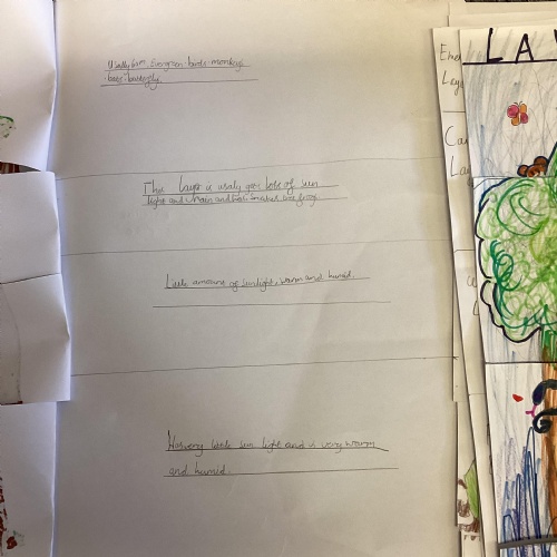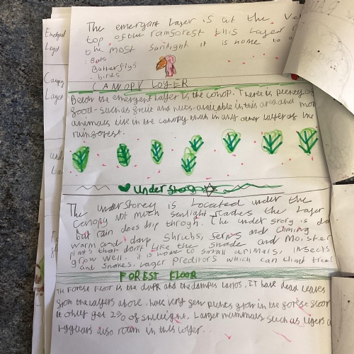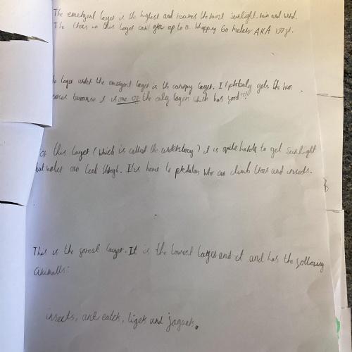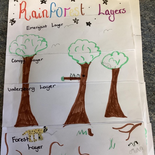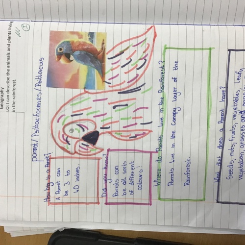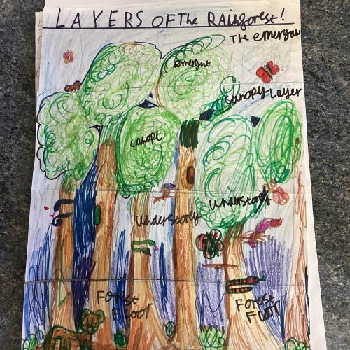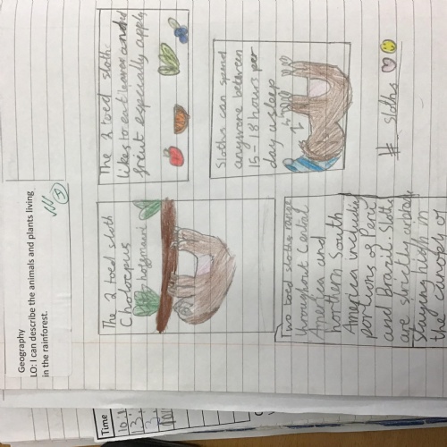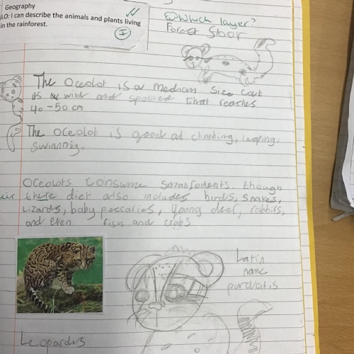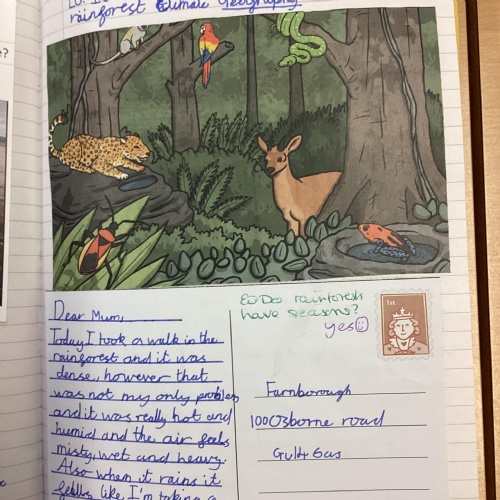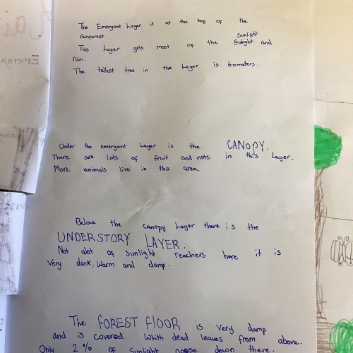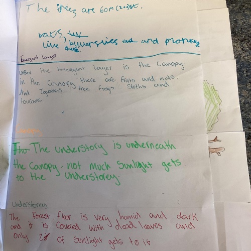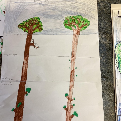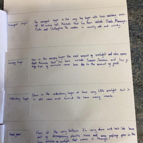 Geography: where are the rainforests? We discovered that there is more than just the Amazon rainforest! We used atlases to locate different countries which have rainforests in and discovered that they are near the equator and between the Tropics. We used our previous learning to help us decide that rainforests must be hot places.