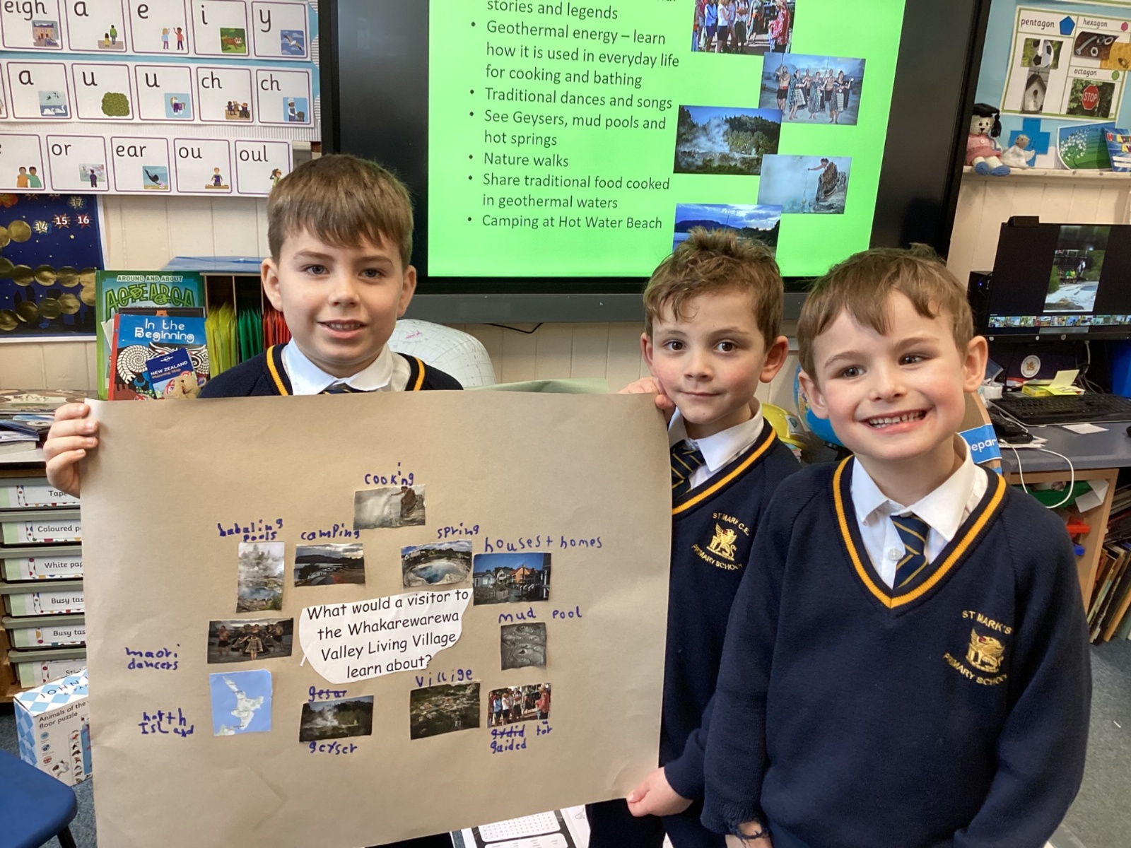 Following the flight to Auckland, New Zealand, the children will try to answer Penguin’s question. They will then start an enquiry, investigating New Zealand as a holiday destination. Why is New Zealand a good place for a “Happy Holiday”? They will build their geographical knowledge of New Zealand, looking at its location, physical and human features and truly diverse environment. The children will explain their findings and make comparisons to the UK, writing a postcard home and creating a poster about the amazing features of New Zealand. Exploring the Maori myths and legends will lead to creative writing and an insight deeper into the New Zealand way of life. The children will use scientific skills to explore the weather in New Zealand and look at seasons and day length, making a further comparison to the UK.