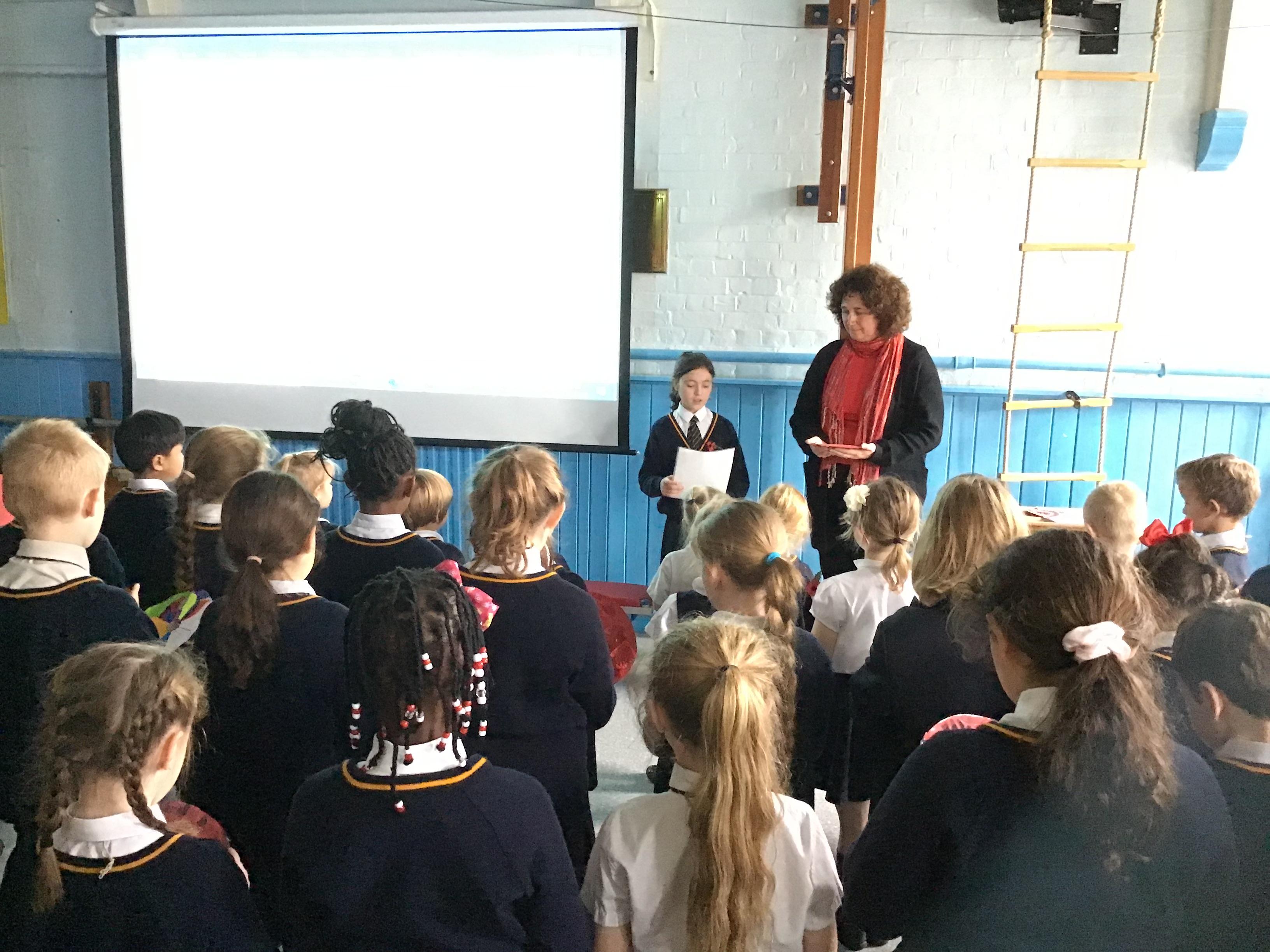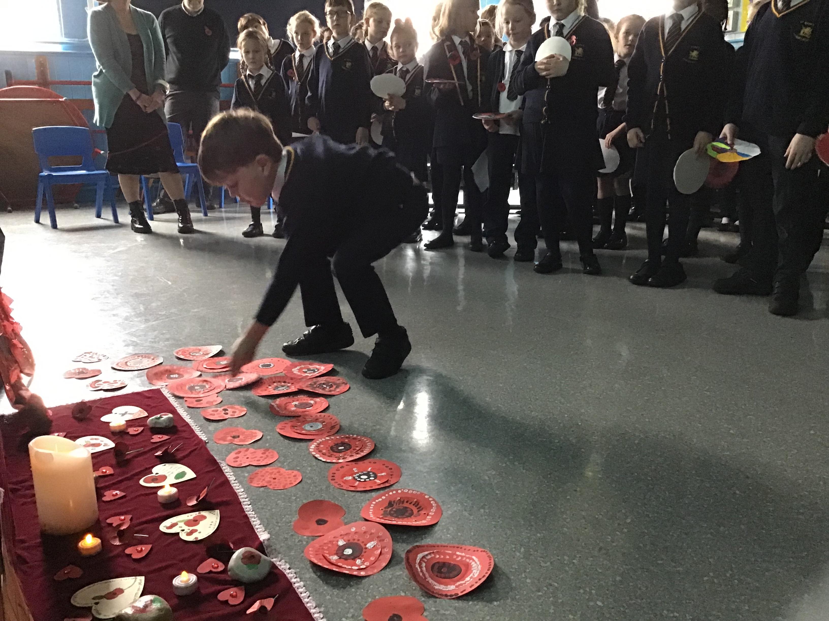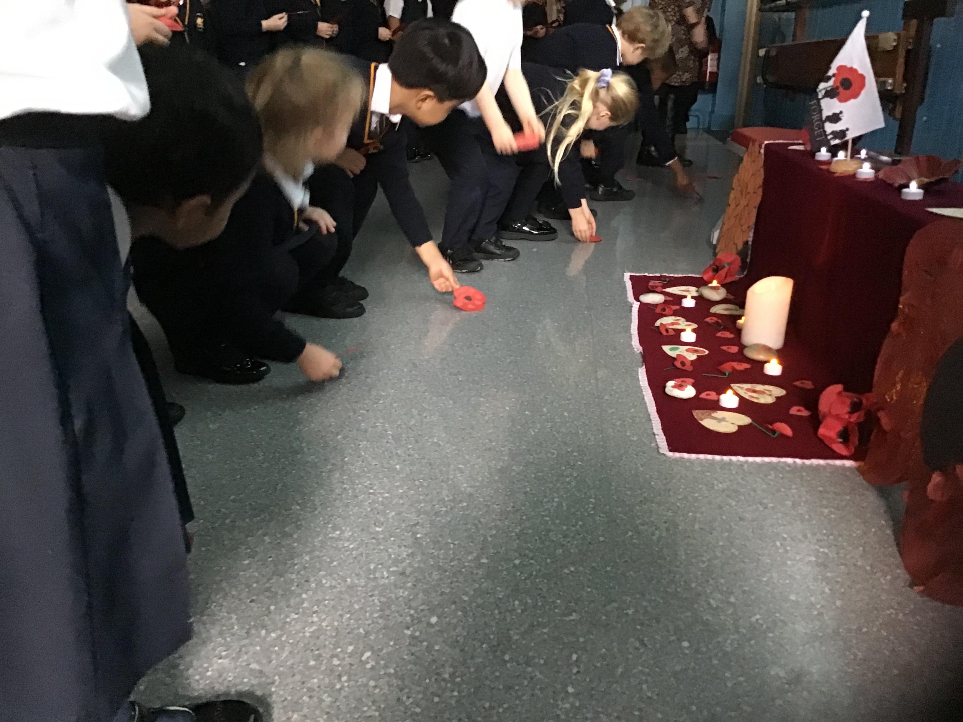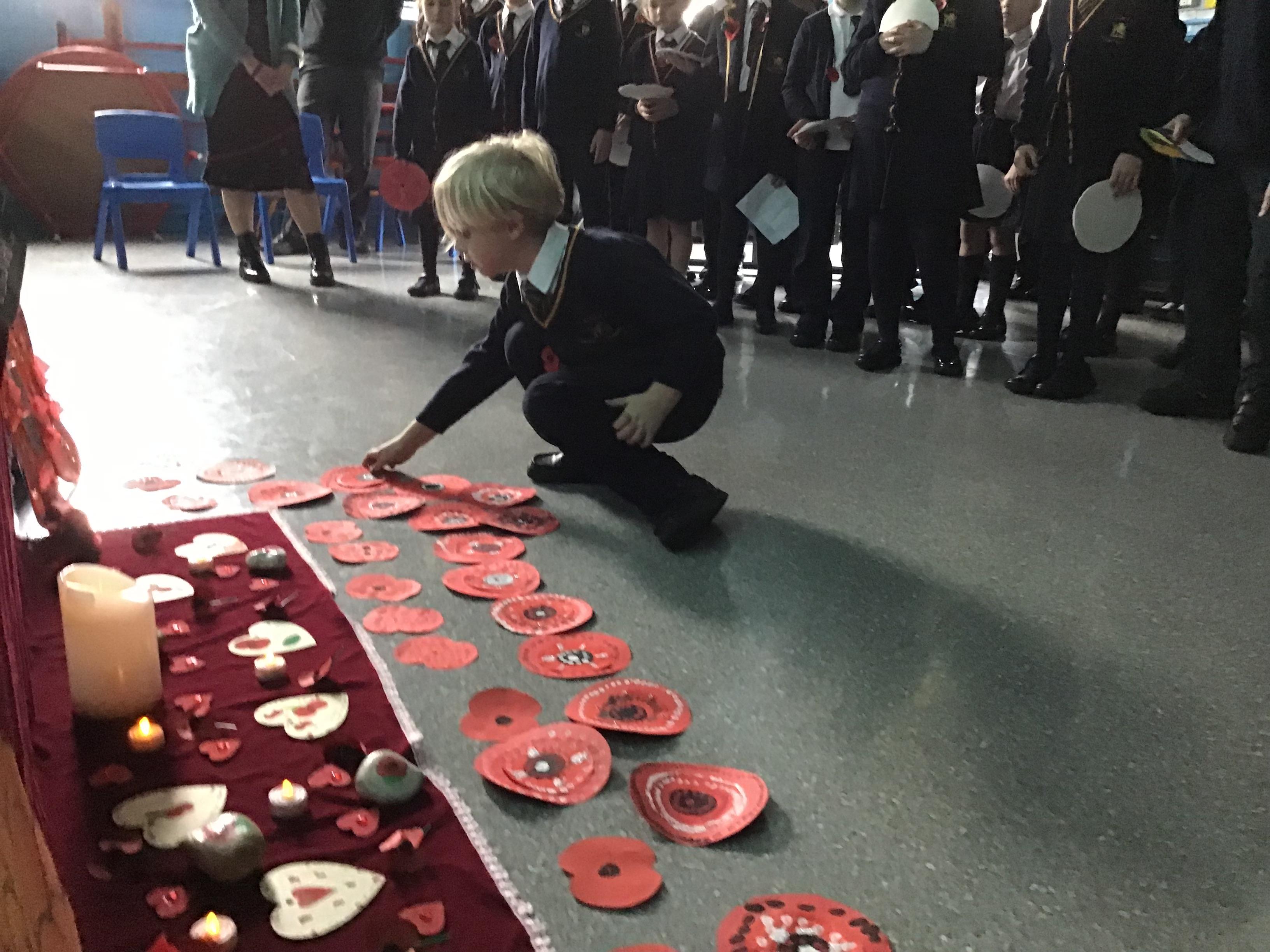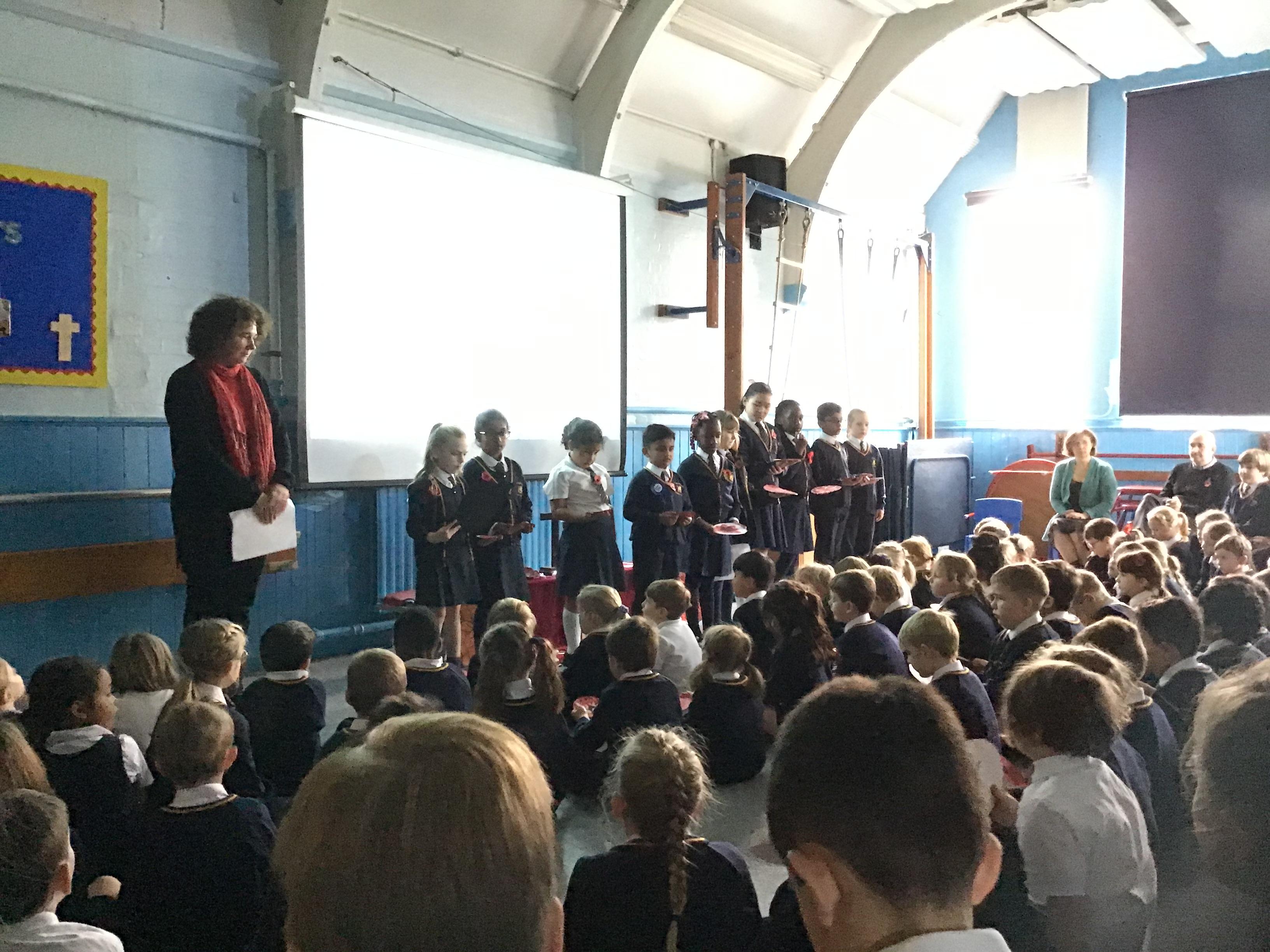 Today the whole school came together for our service of remembrance. The children all made a poppy which we used as a focal point for prayer, lead by our Spirituality Team. We looked at who and why we remember, including the significance of the poppy and other flowers such as the marigold. Together we observed the 2 minute silence at 11am, listening to the last post and the traditional words of the poem "For the Fallen" by Laurence Binyon. Year 5/6 performed another powerful poem written by Brian Moses called "What are we fighting for".