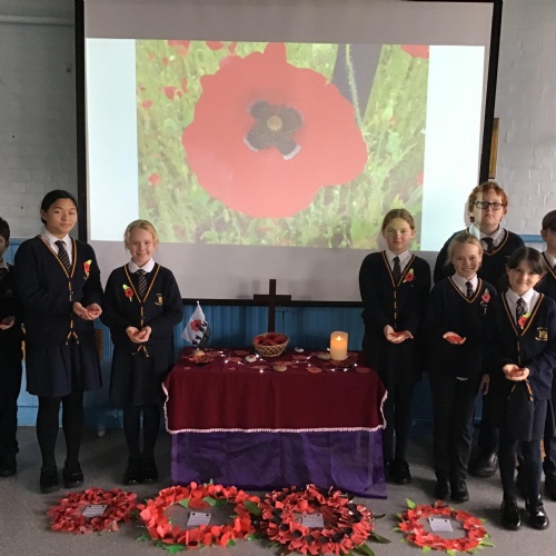 Today, we came together as a whole school community to learn about Remembrance Day. Remembrance Day is a special day that takes place on 11 November every year. The children entered the hall, holding a poppy and listened to 'Nimrod' from the 'Enigma Variations' Op 36 by Elgar . We shared a special video which explained the importance of Remembrance Day and talked about significance of this day for our school community. Year 1/2 read a poem called Poppy, Poppy before each class laid their beautiful wreaths made this year from recycled cups. This follows the Royal British Legion, who have made poppies this year for the first time from recycled materials and no plastic.