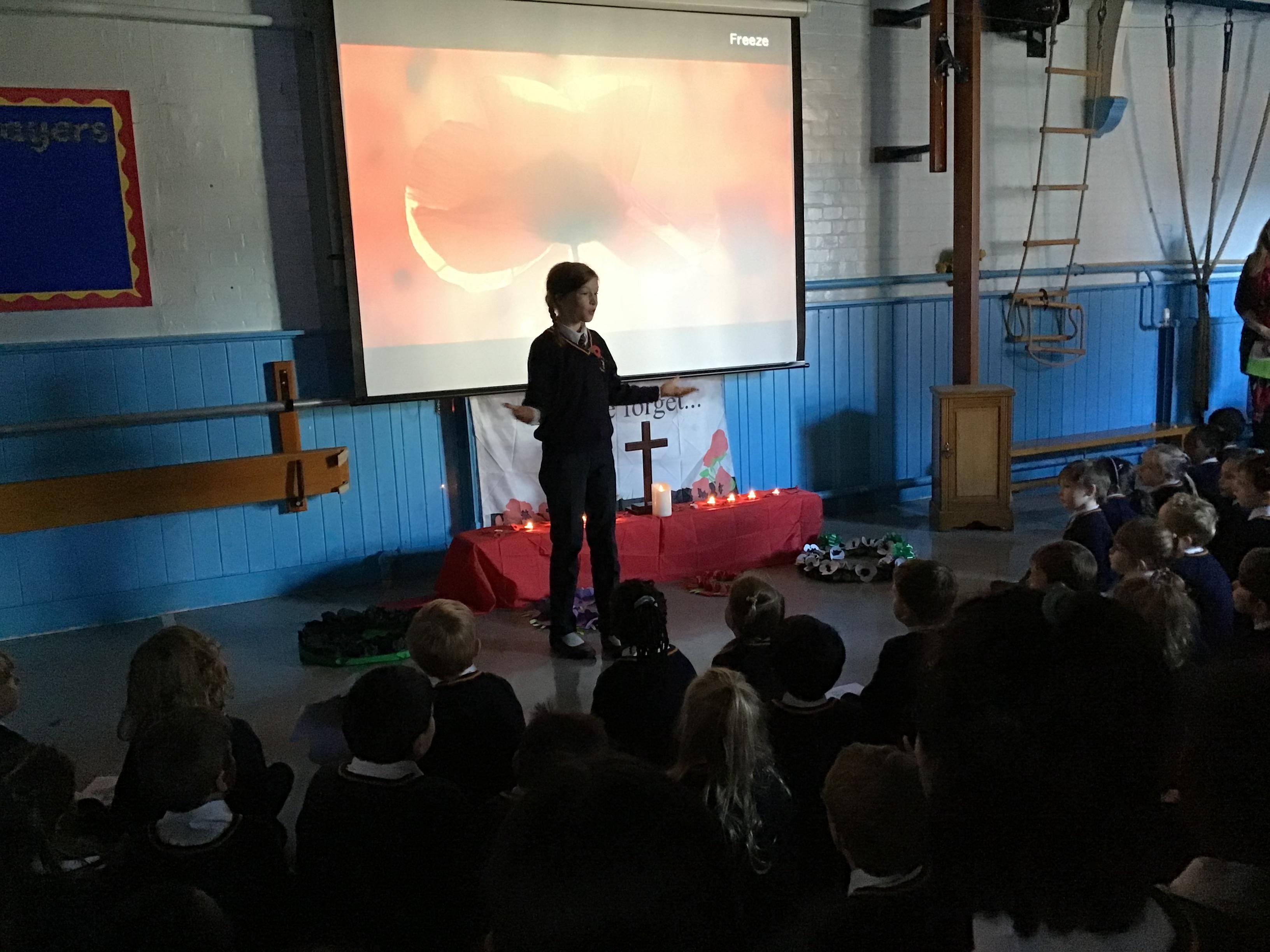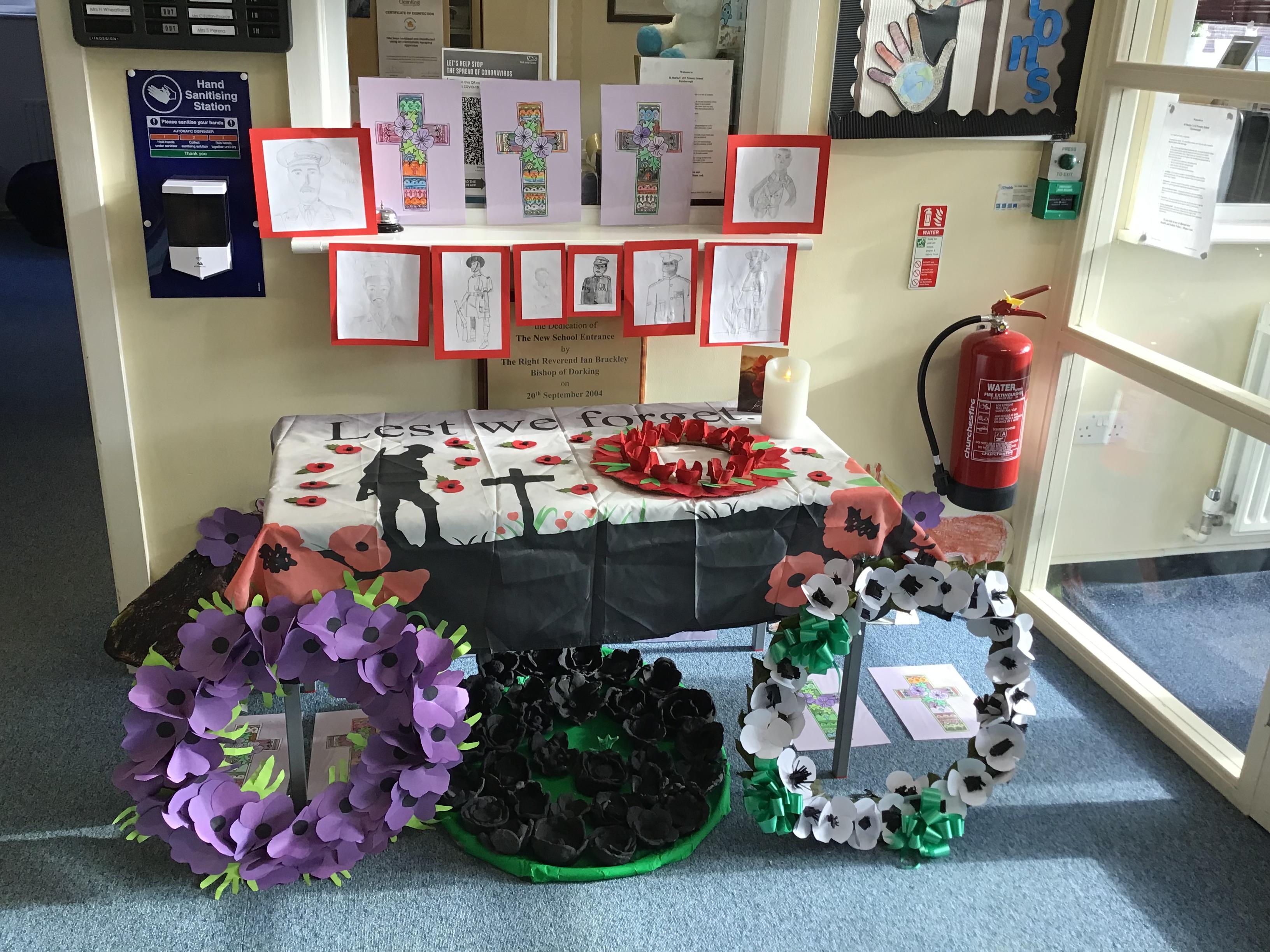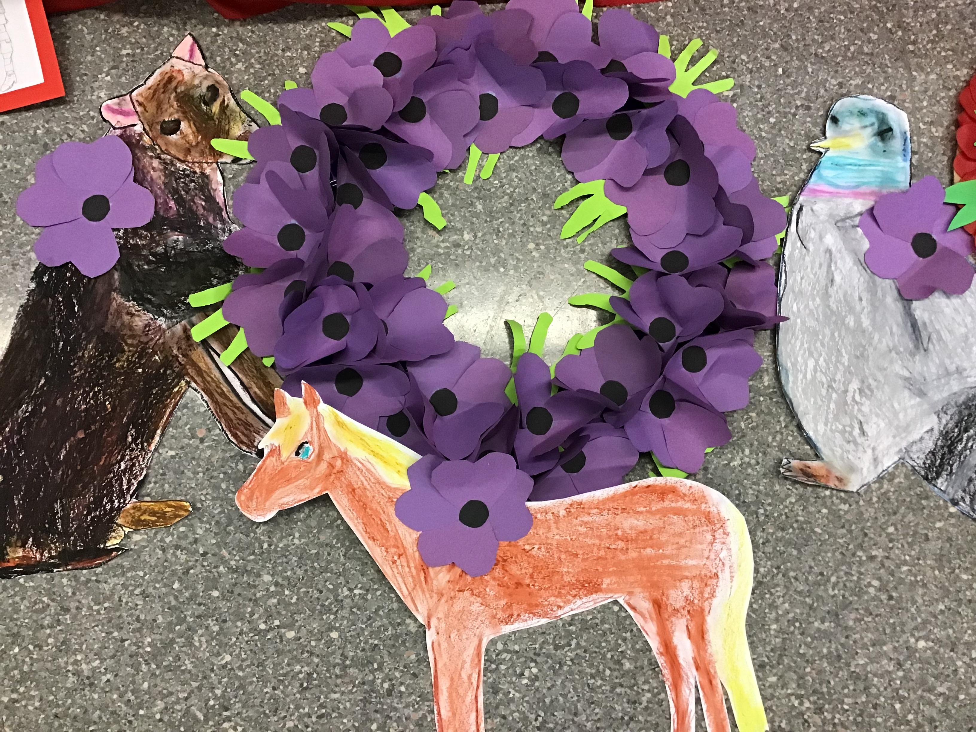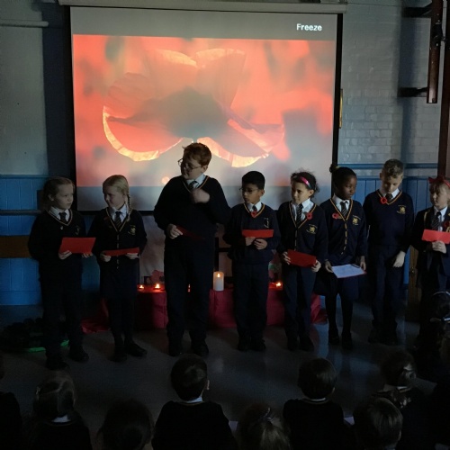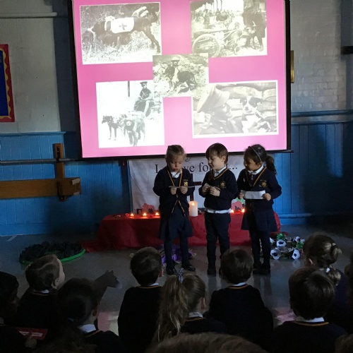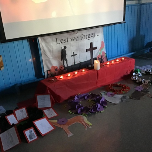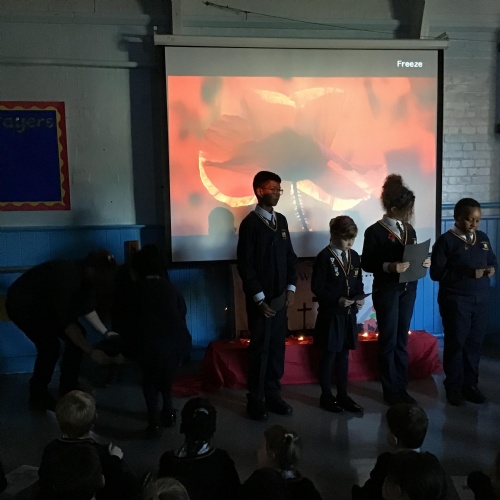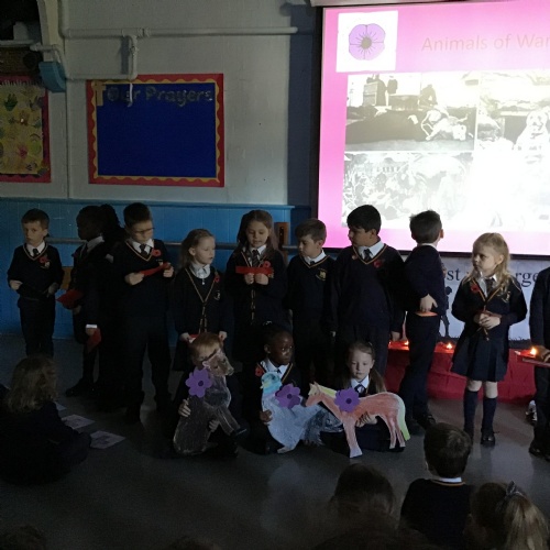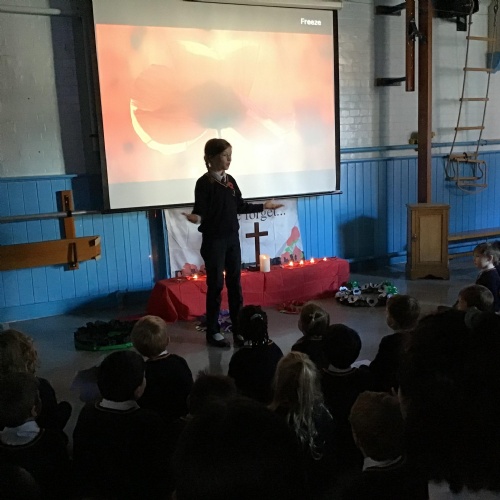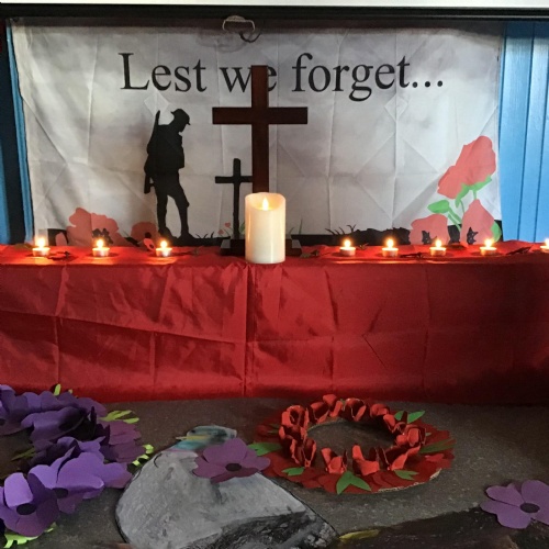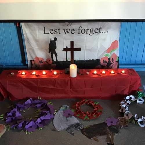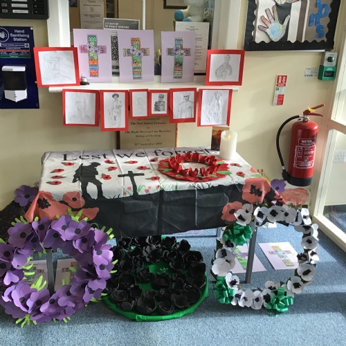 On Thursday 11th November, we held our annual Remembrance worship which was deeply moving. Each class lay a special wreath during the service to represent different casualties of war. Year 5/6 lay a black poppy wreath, representing pride, honour, glory and hope for Black, African, Caribbean and Asian soldiers who sadly died in the war. Year 3/4 lay a white poppy wreath to help us to think about peace—hope for peace always and pray that there will be no more war. Year 3/4 lay a purple poppy wreath to commemorate and remember the animals killed in wars. Year R lay a red poppy wreath, the most famous symbol used to commemorate those who sacrificed their lives in World War one and conflicts that followed. Merryn, in Year 6, read us the most beautiful rendition of ‘Do not stand over my grave’ and we all marked our respect with a two minute silence at 11am.