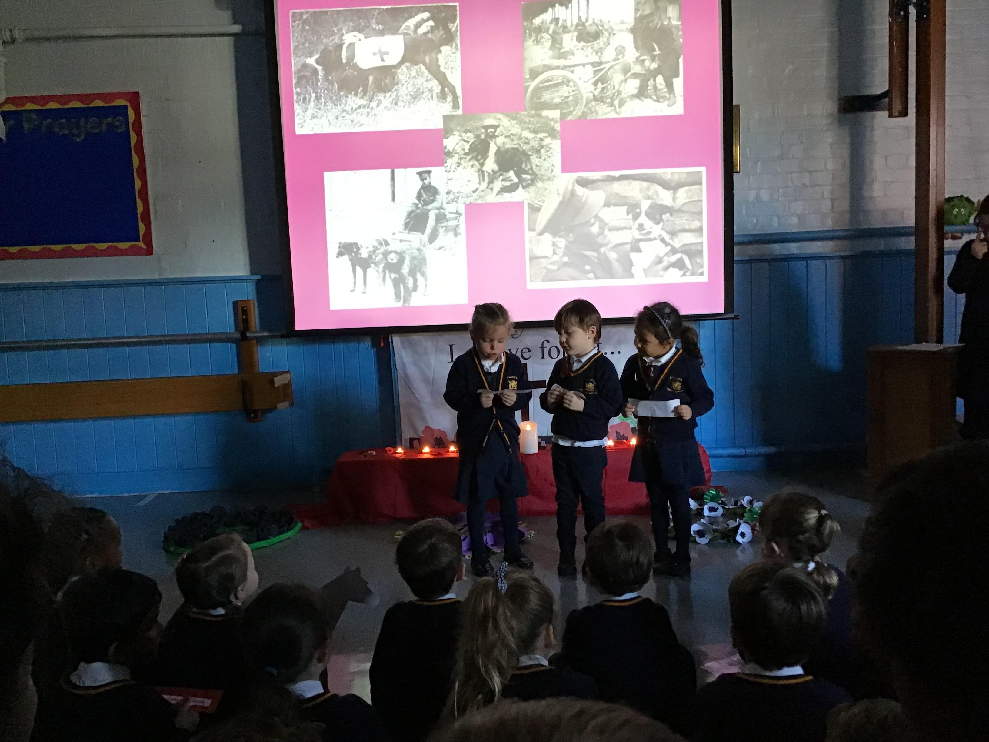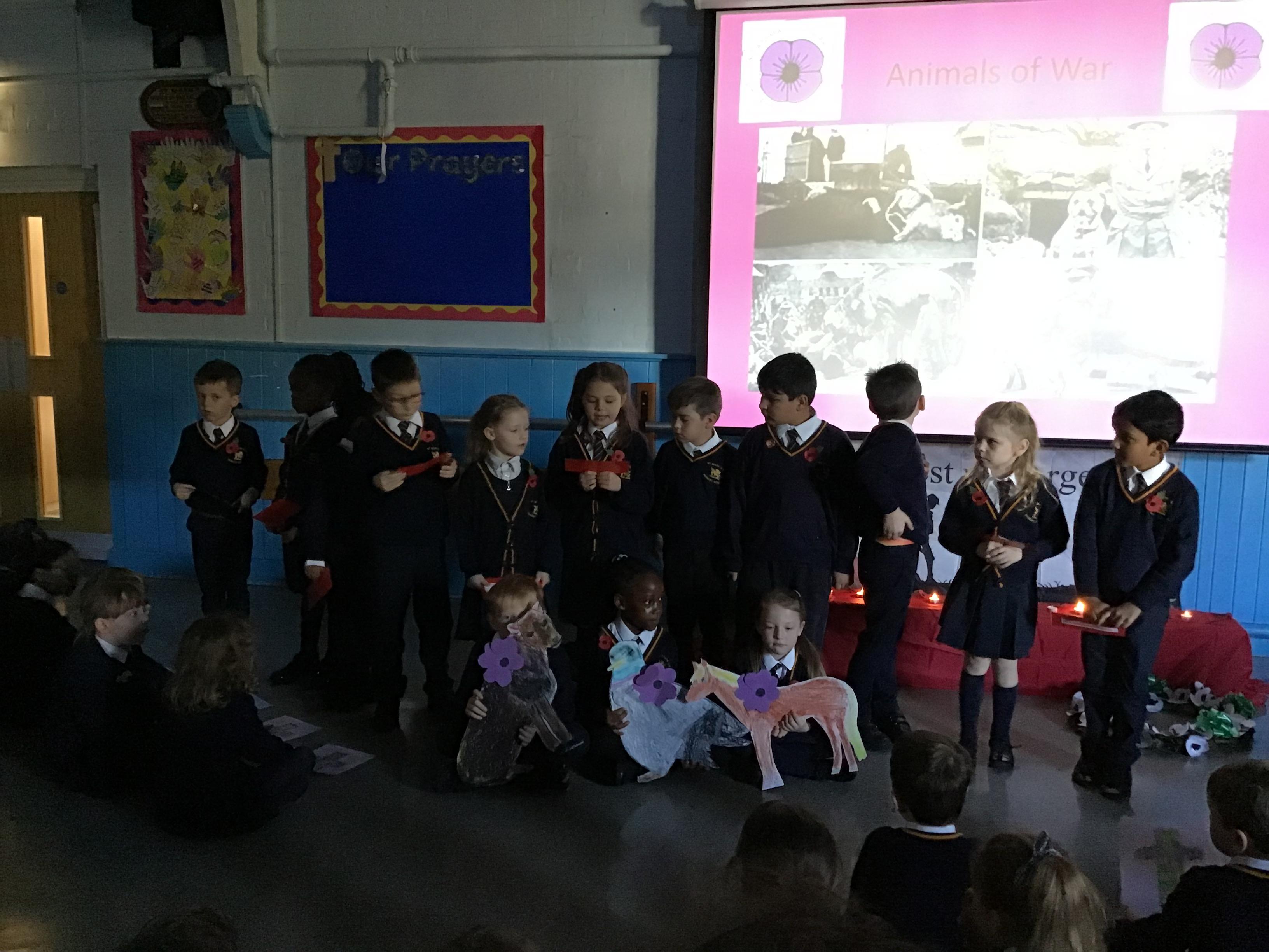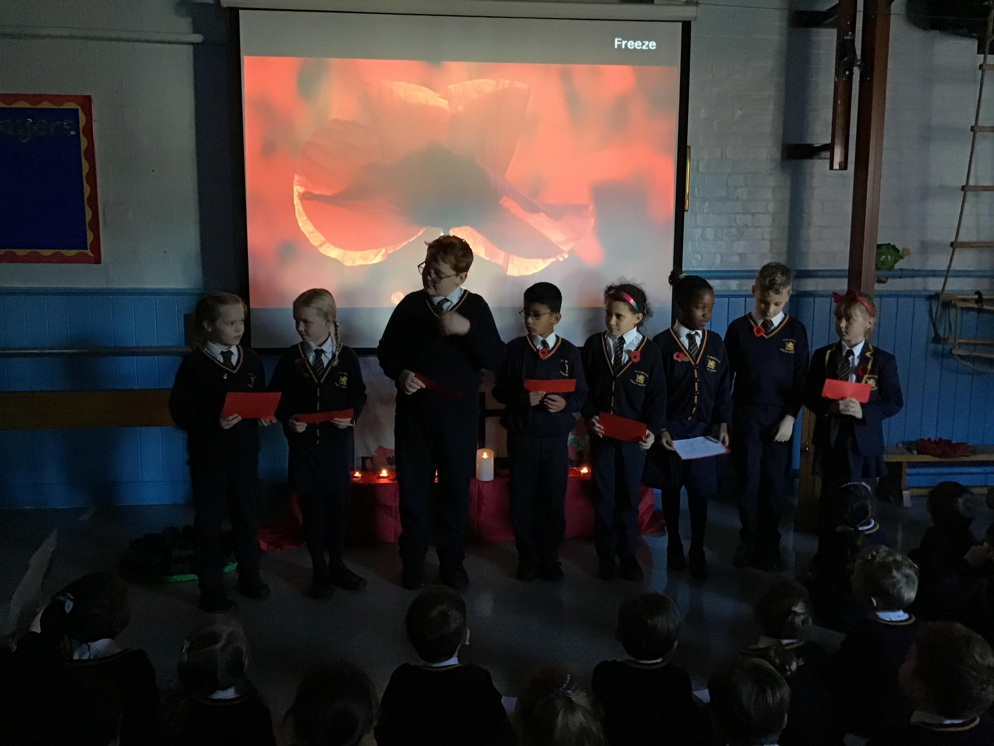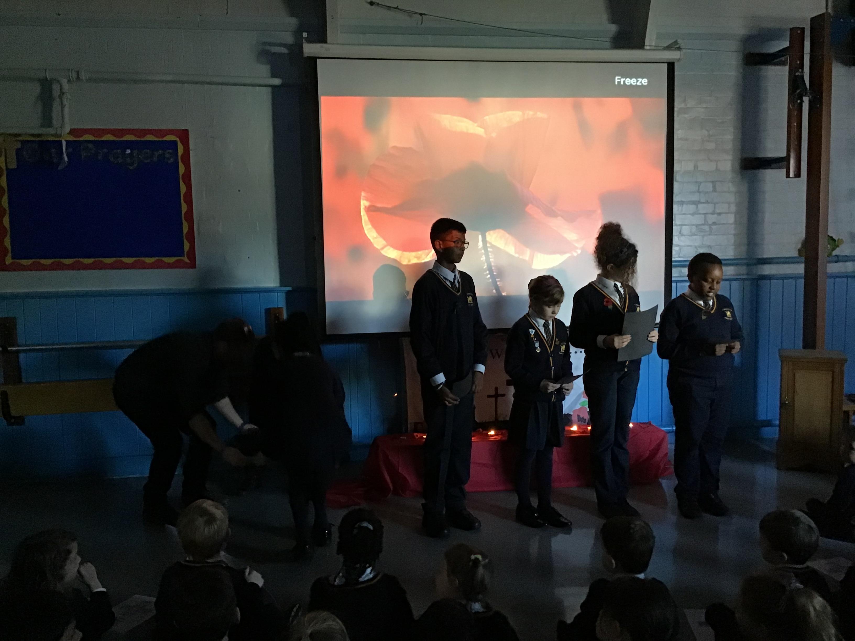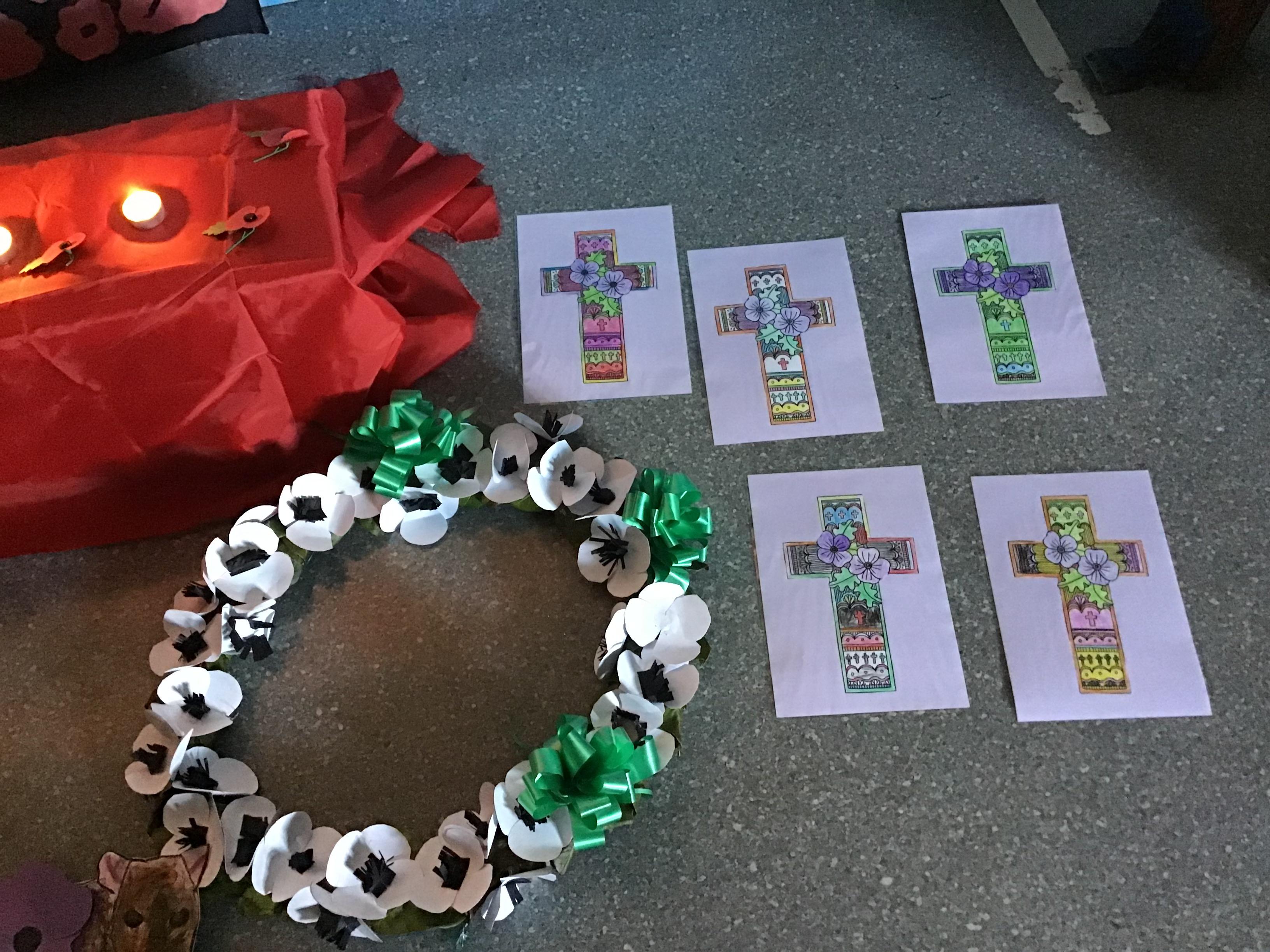 On Thursday 11th November, we held our annual Remembrance worship which was deeply moving. Each class lay a special wreath during the service to represent different casualties of war. Year 5/6 lay a black poppy wreath, representing pride, honour, glory and hope for Black, African, Caribbean and Asian soldiers who sadly died in the war. Year 3/4 lay a white poppy wreath to help us to think about peace—hope for peace always and pray that there will be no more war. Year 3/4 lay a purple poppy wreath to commemorate and remember the animals killed in wars. Year R lay a red poppy wreath, the most famous symbol used to commemorate those who sacrificed their lives in World War one and conflicts that followed. Merryn, in Year 6, read us the most beautiful rendition of ‘Do not stand over my grave’ and we all marked our respect with a two minute silence at 11am.