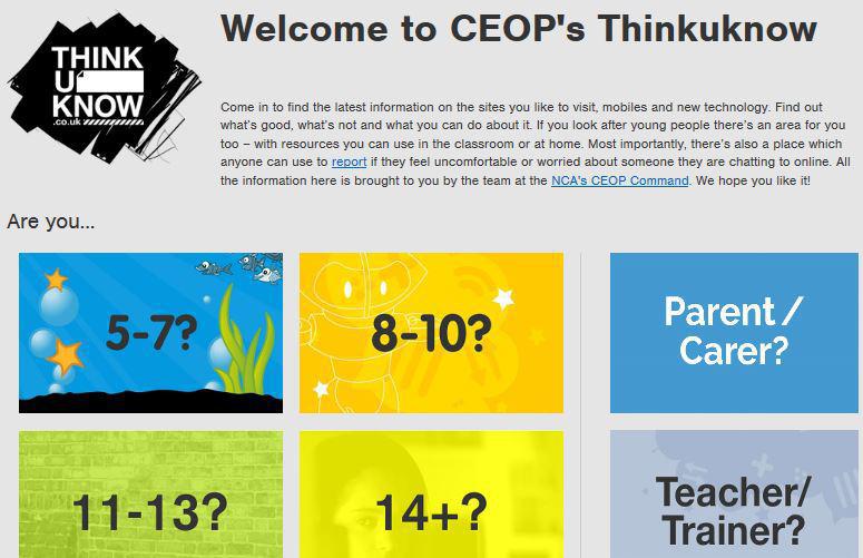 Thinkuknow is brought to you by the Child Exploitation and Online Protection (CEOP) centre. You may have seen some of their video clips on National TV recently.