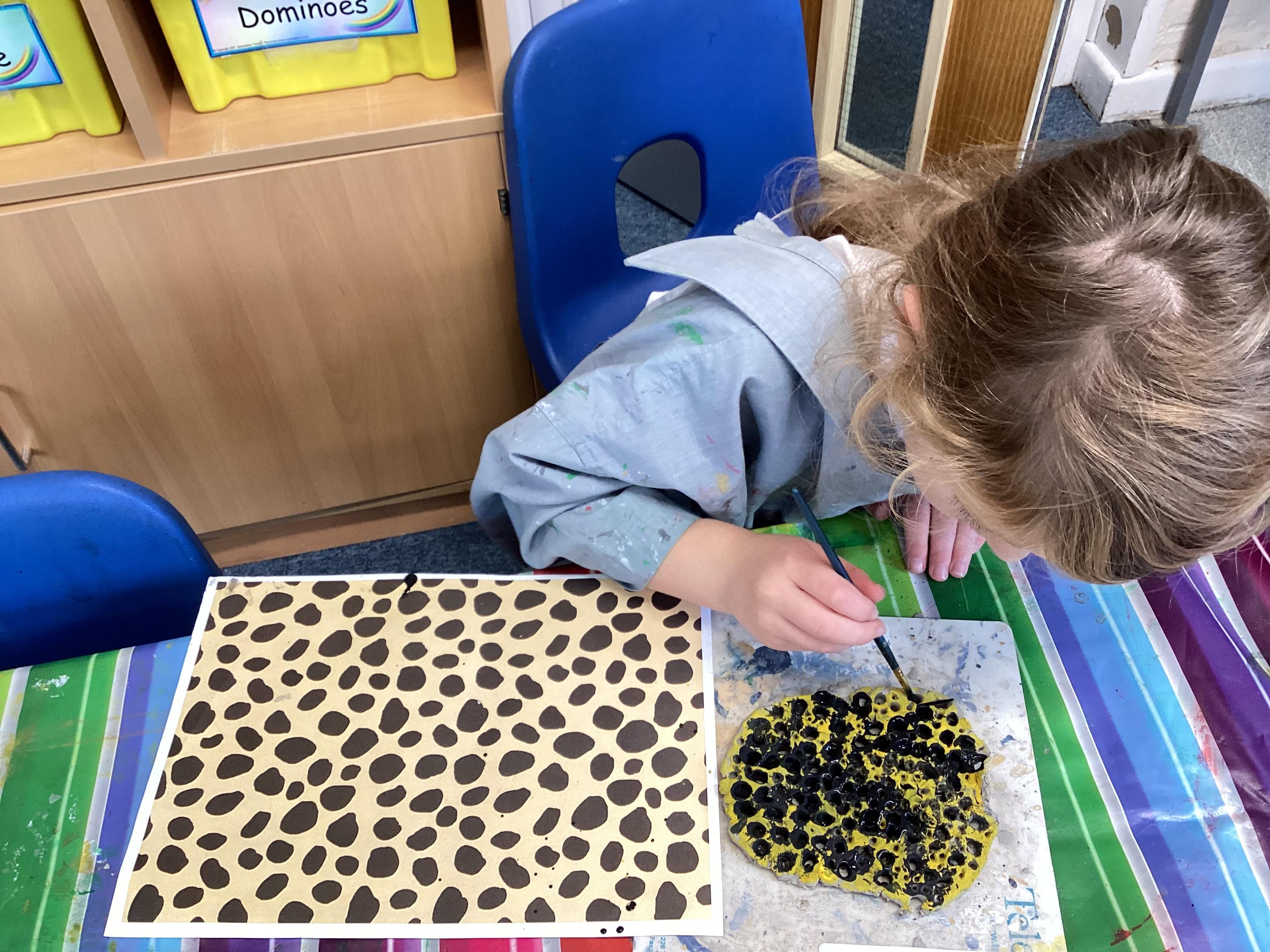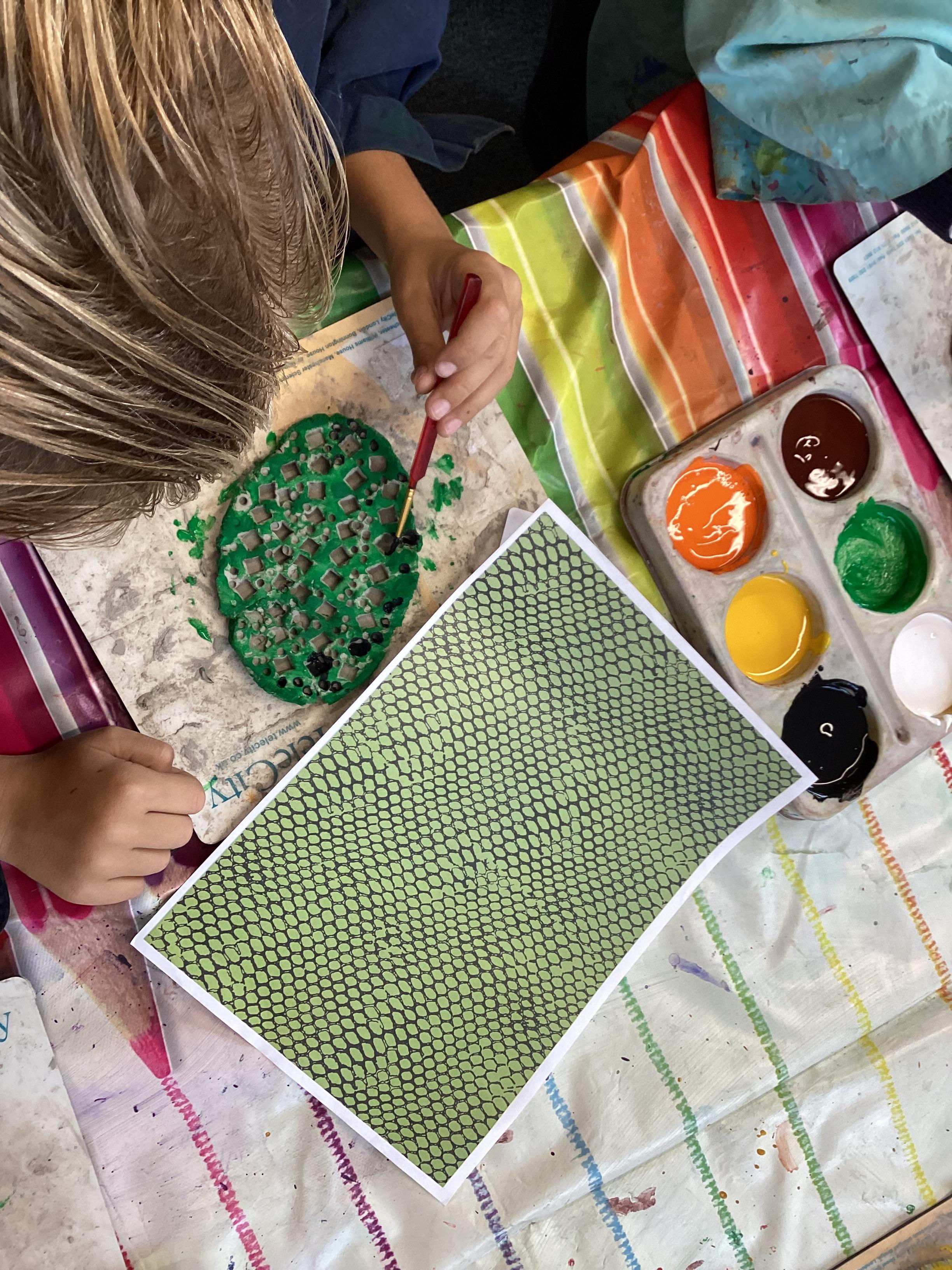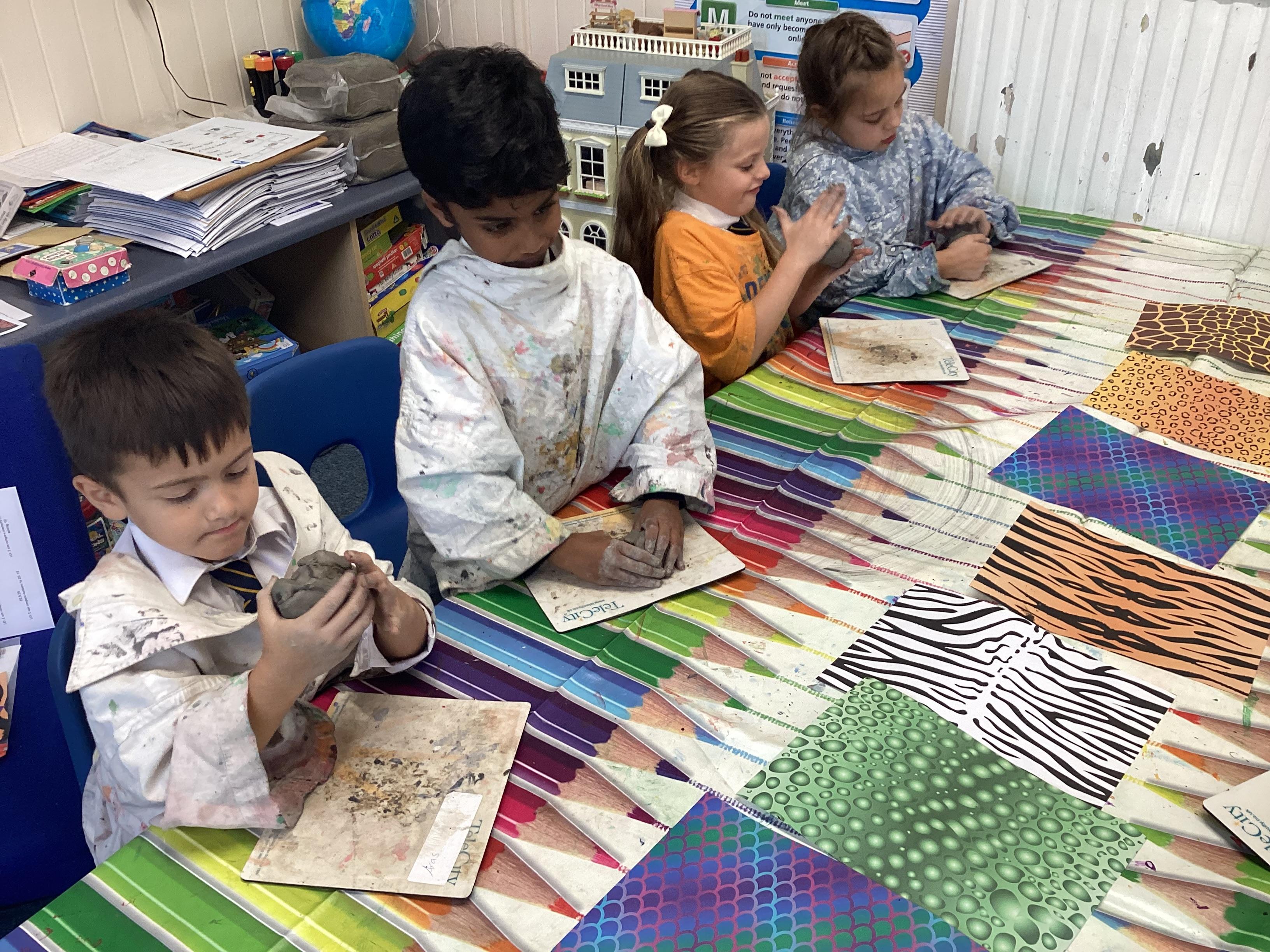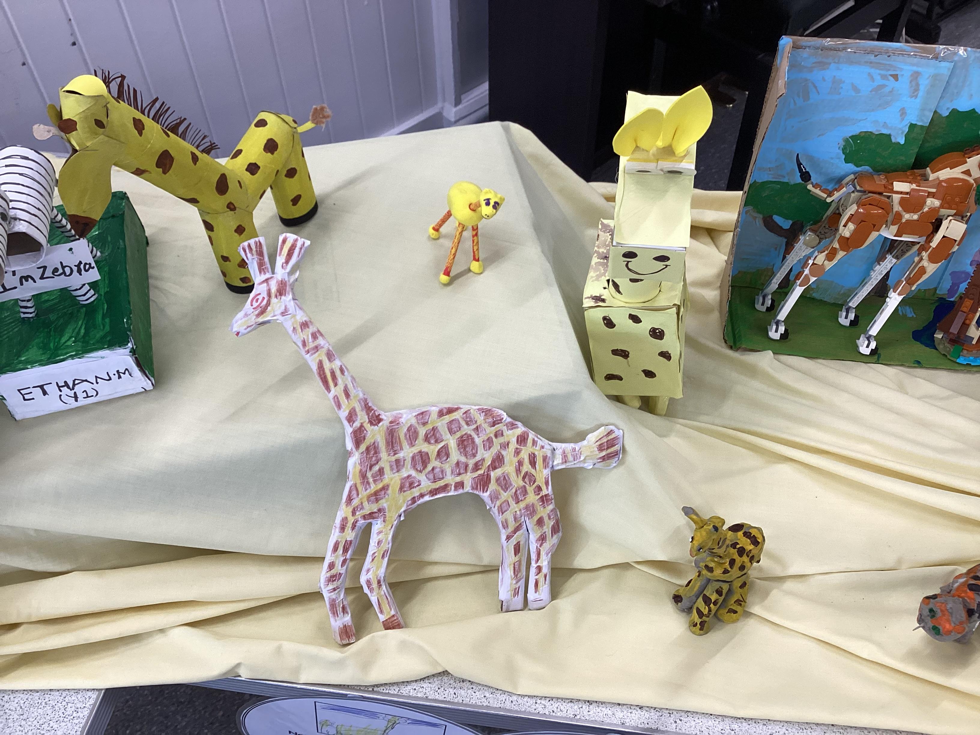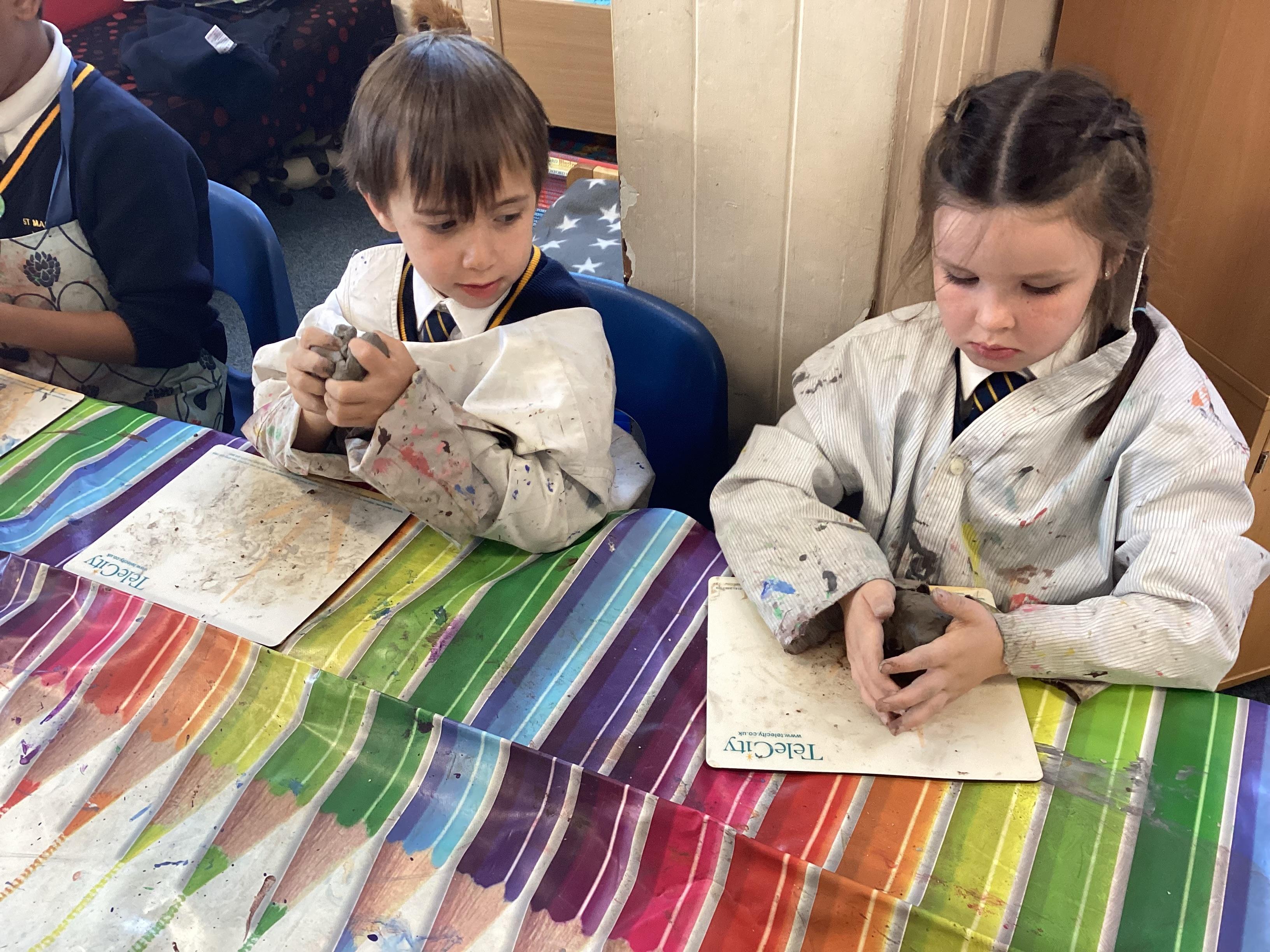 We have become artists and have started learning how to produce sculptures from clay. First we kneaded the clay, rolled a ball and flattened it out. We made a tile and then looked at different animal skin patterns. We used different tools to make patterns in the clay, lines, stripes, circles and lots of other shapes!